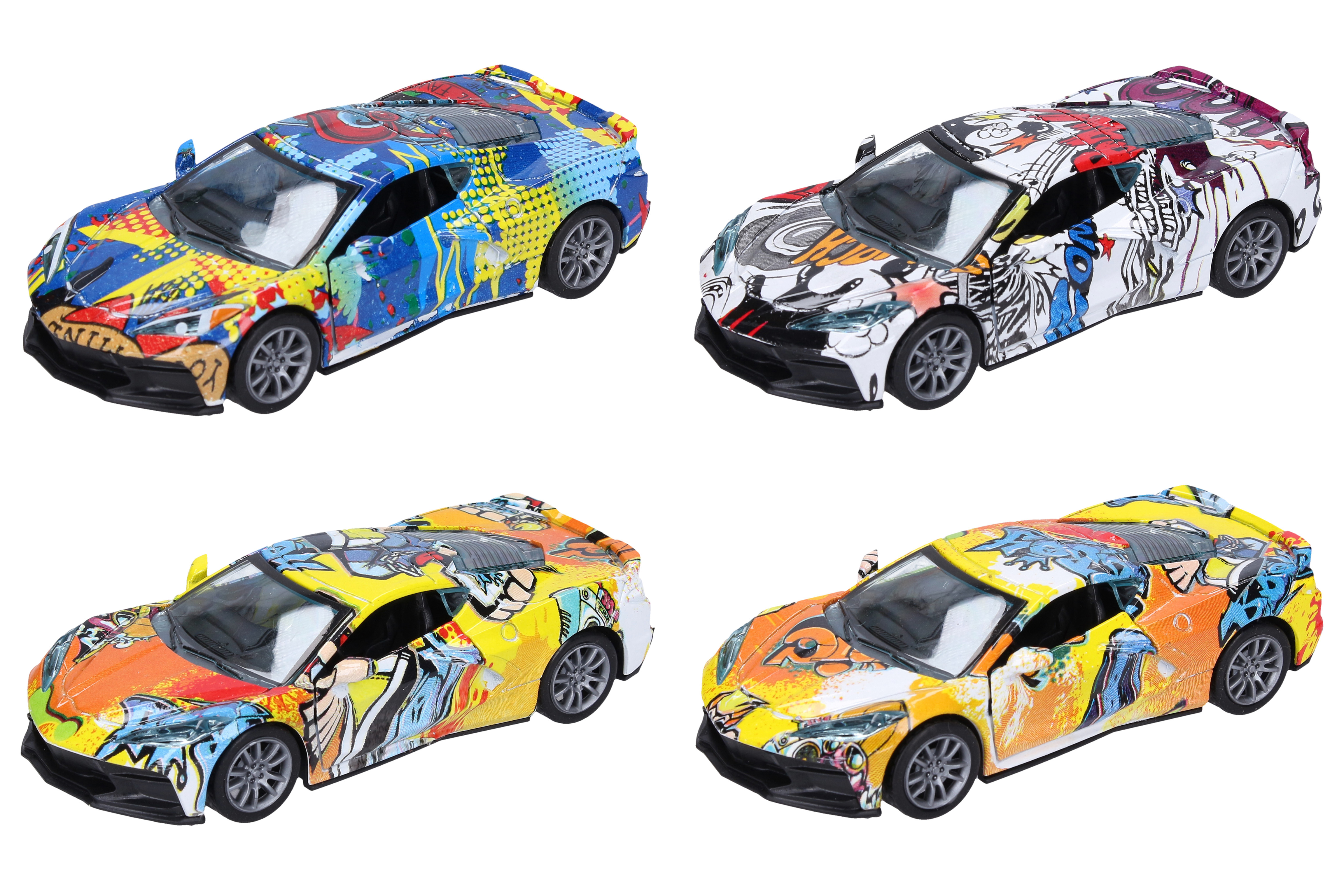 Auto kovové. Velikost 12 cm. Otevírací dveře. Zpětné natažení. 4 varianty.