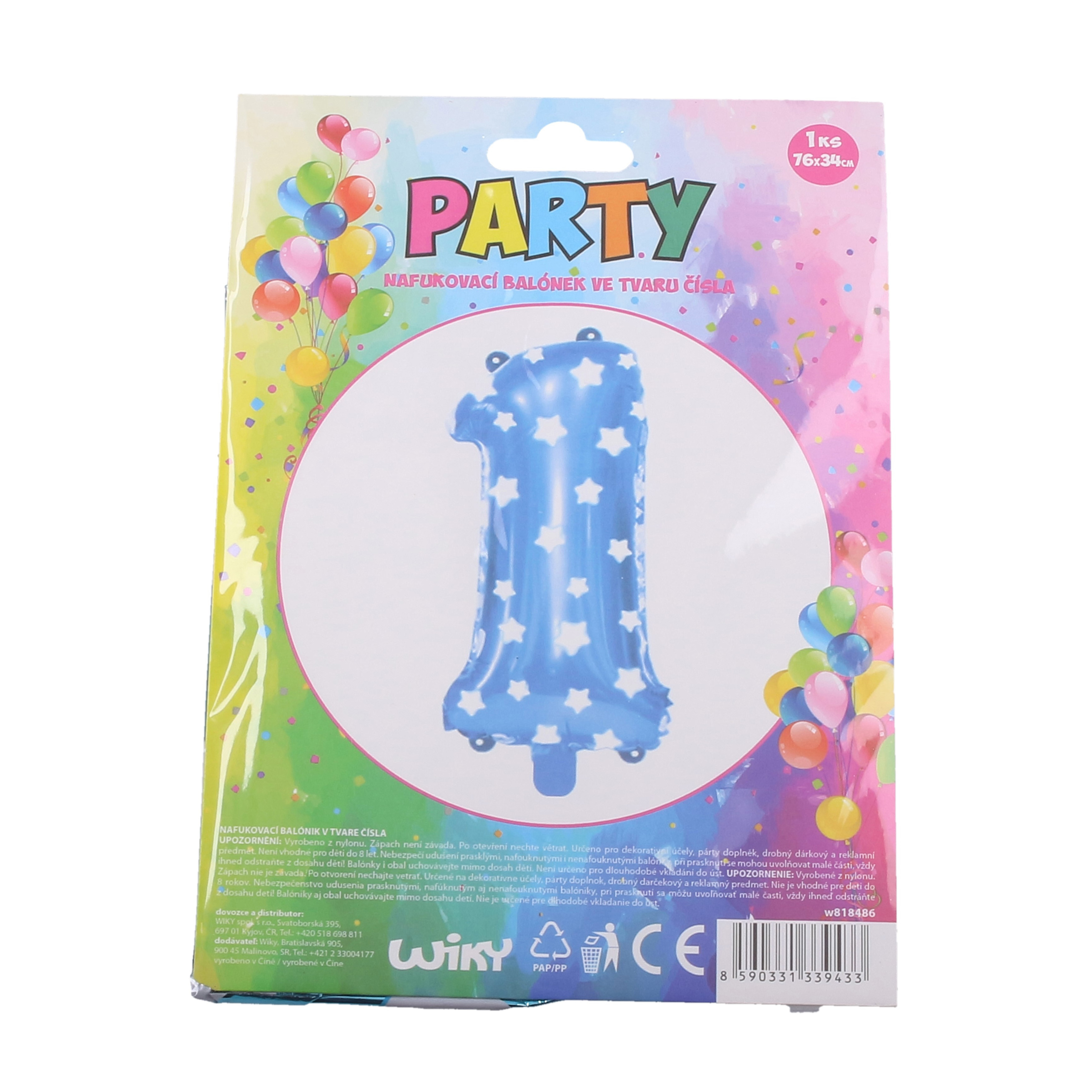 Modrý nafukovací balónek s hvězdičkami ve tvaru čísla je vhodný jako doplněk na narozeninovou párty!