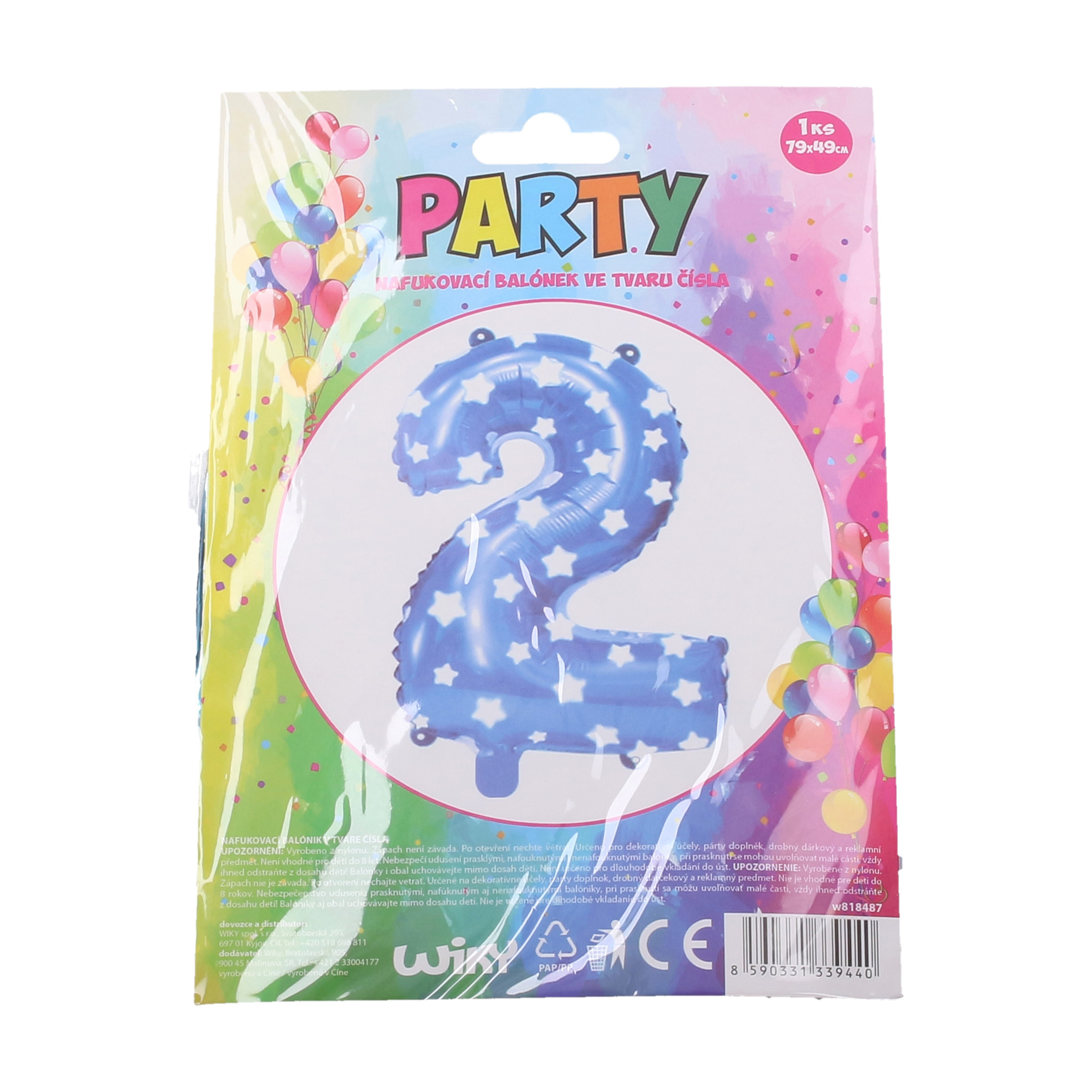 Modrý nafukovací balónek s hvězdičkami ve tvaru čísla je vhodný jako doplněk na narozeninovou párty! Rozměry: 79 x 49 cm