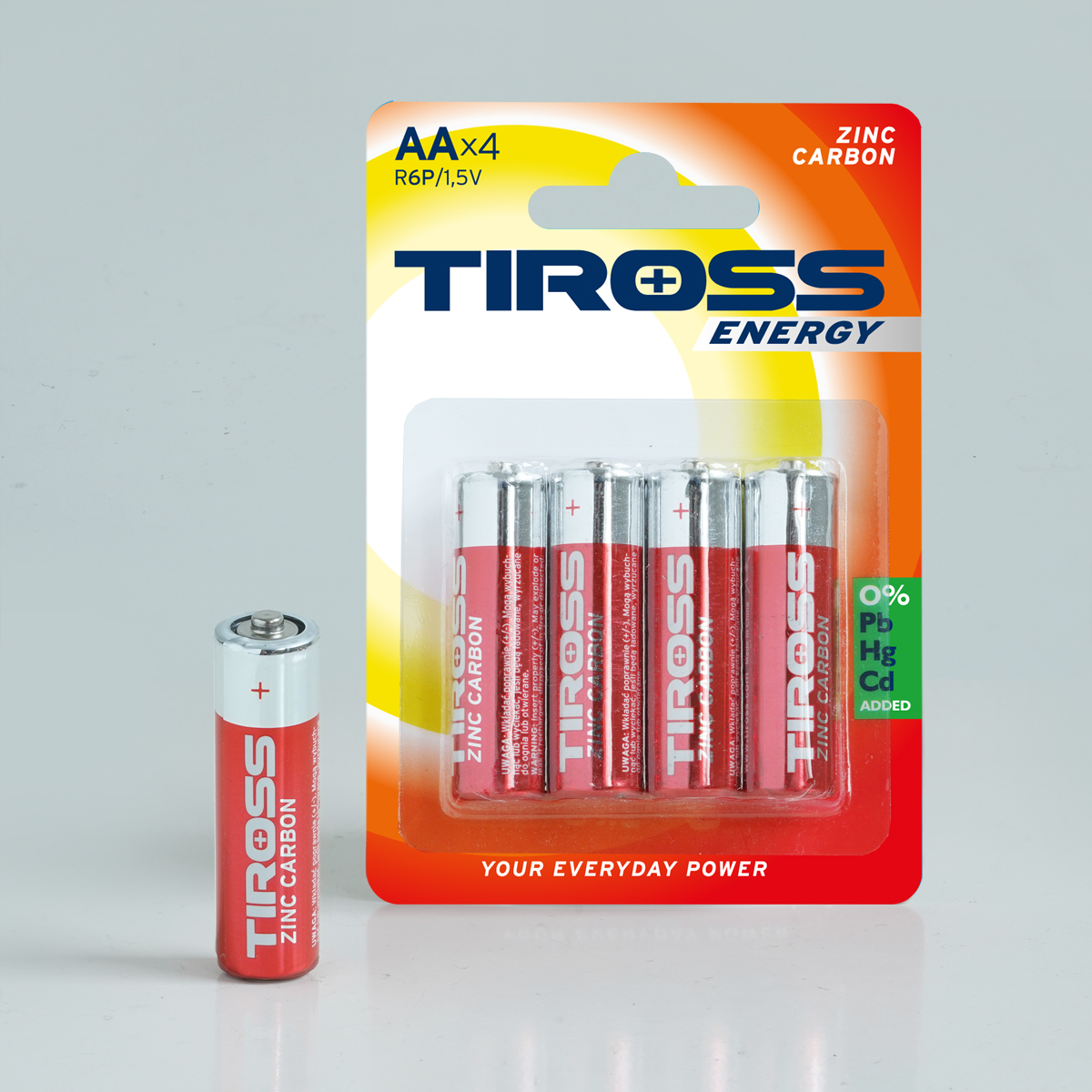 Baterie AA (R6P, 1.5V). Zinko-uhlíkový článek. Balení obsahuje 4 ks.