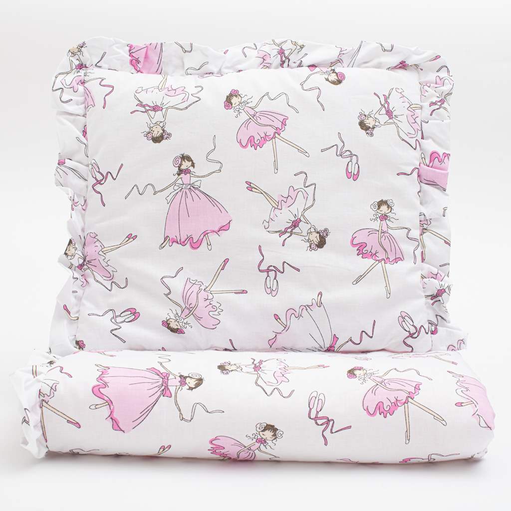 Nádherný bavlněný set do kočárku New Baby Ballerina Bella. Set obsahuje polštářek a peřinku s volánkem a potiskem pohádkové tančící baletky. Vše je vyplněno antialergickým vláknem. Set je ušitý z vysoce kvalitní bavlny. Bavlněný set luxusně a jemně pohladí a zahřeje pokožku vašeho miminka. Rozměry: polštář: cca 32x25 cm, peřinka: cca 82x68 cm. Složení: povlak 100% bavlna, výplň 100% polyester.