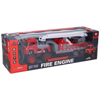 Auto tahač hasičský RC na dálkové ovládání. Rozměry 33x11x12 cm. Světelné efekty. 3xAA baterie do auta, 2xAA do ovladače nejsou součástí.