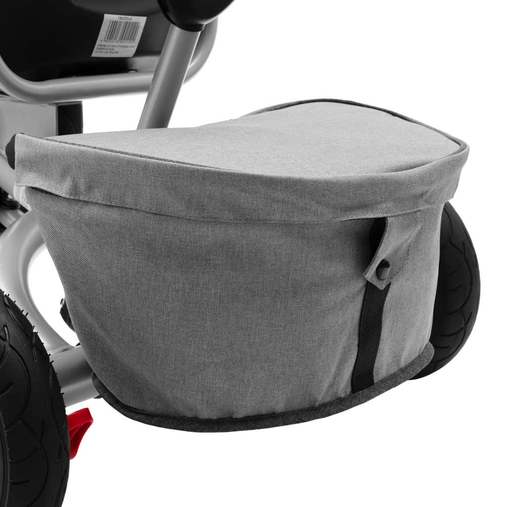 Dětská šlapací tříkolka Baby Mix TYPHOON je multifunkční dopravní prostředek a je typickým příkladem produktů GROW UP - roste zároveň s dítětem. Tříkolku může ovládat jak dítě, tak i rodič pomocí nastavitelné vodící tyče. Po odebrání vodící tyče, sklápěcí stříšky a opěrek bude sloužit jako klasická šlapací tříkolka. Pevná ocelová konstrukce zajistí dítěti bezpečnost a zaručí její používání po mnoho let. Pohodlné a ergonomicky tvarované sedadlo je otočné o 360 stupňů, což umožní dítěti cestovat ve směru nebo proti směru jízdy. O pohodlí a bezpečí během jízdy se stará odnímatelná hrazda, tříbodové bezpečnostní pásy, pohodlné odnímatelné stupačky nebo gumová kola, která skvěle absorbují nerovnosti, poskytují perfektní přilnavost a nevyžadují huštění. Pro uložení hraček nebo potřeb pro dítě je zde praktický úložný košík.