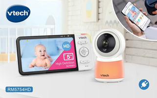 Elektronická video chůva RM 5754 HD Smart Wi-Fi umožňuje kontrolovat batole prakticky odkudkoli - z domova nebo na dálku prostřednictvím chytrého zařízení. Sledujte své dítě v reálném čase na 5" rodičovském zařízení ve vysokém rozlišení nebo v aplikaci MyVTech Baby. Vychutnejte si křišťálově čistý obraz ve vysokém rozlišení při sledování na zařízení se systémem iOS nebo Android.