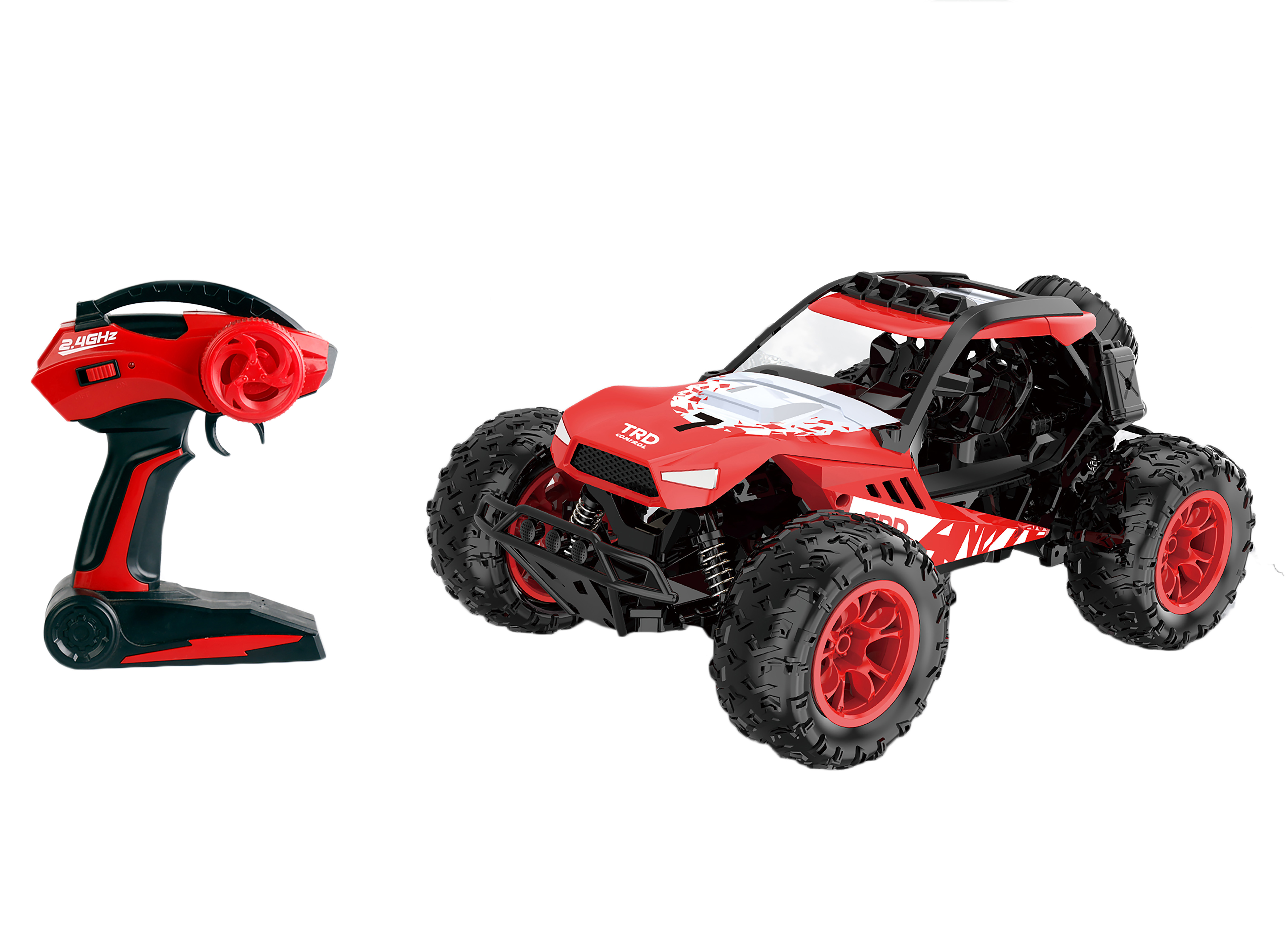 Bugina Doughty RC na dálkové ovládání. Rozměry 29x19x14 cm. Frekvence 2.4GHz. Pistolový ovladač. Bateriový pack 3.7V do buginy součástí, 2xAA do ovladače nejsou součástí. USB kabel součástí. Přepínač ON/OFF na spodní straně buginy a na ovladači.