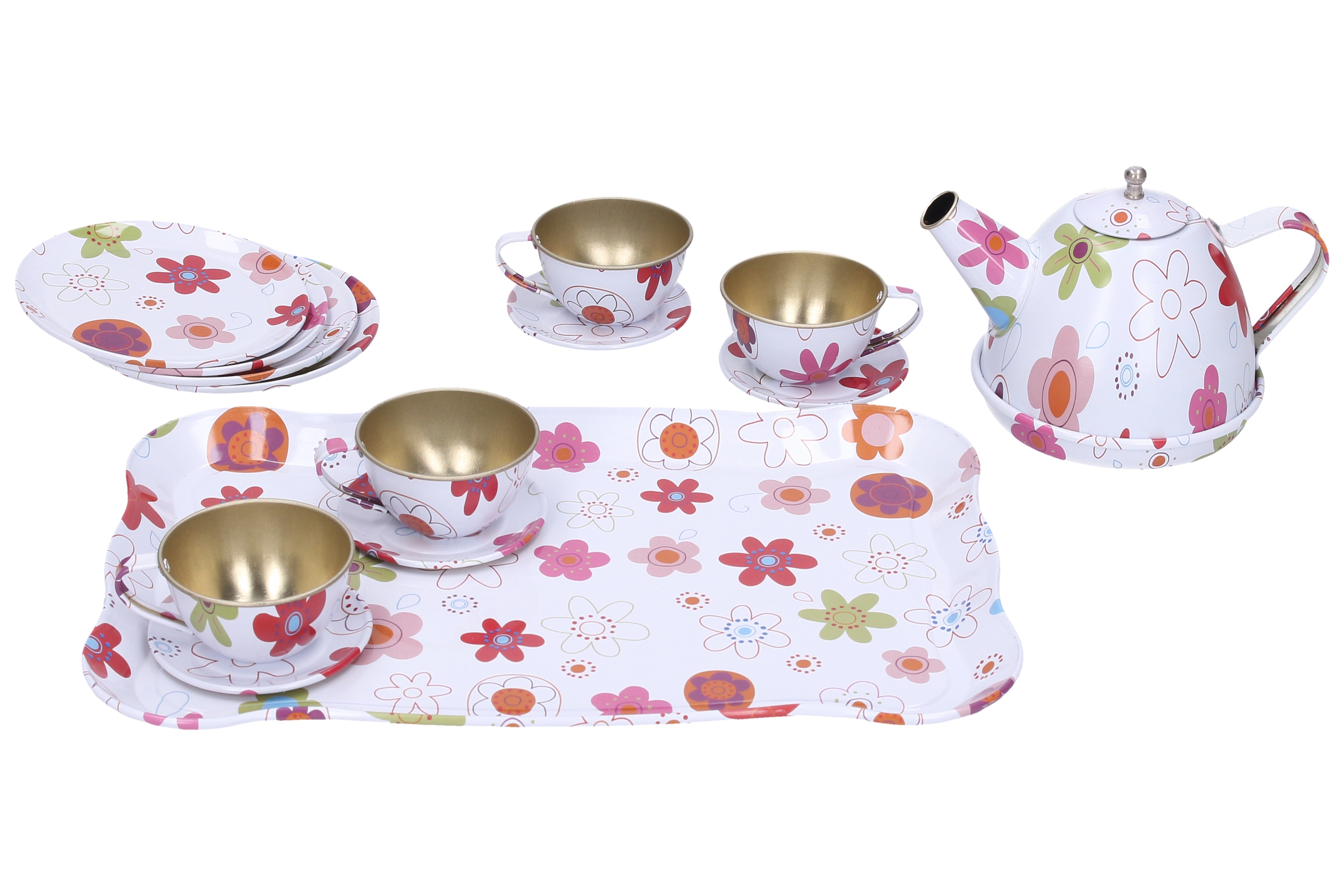 Pozvi kamarádky na čaj a užijte si chvilku klidu na pikniku s malovaným čajovým setem. Balení obsahuje 1 x konvičku, 4 x malý talířek, 4 x tácek, 4 x čajový šálek. Materiál kov. Doporučený věk: 3+