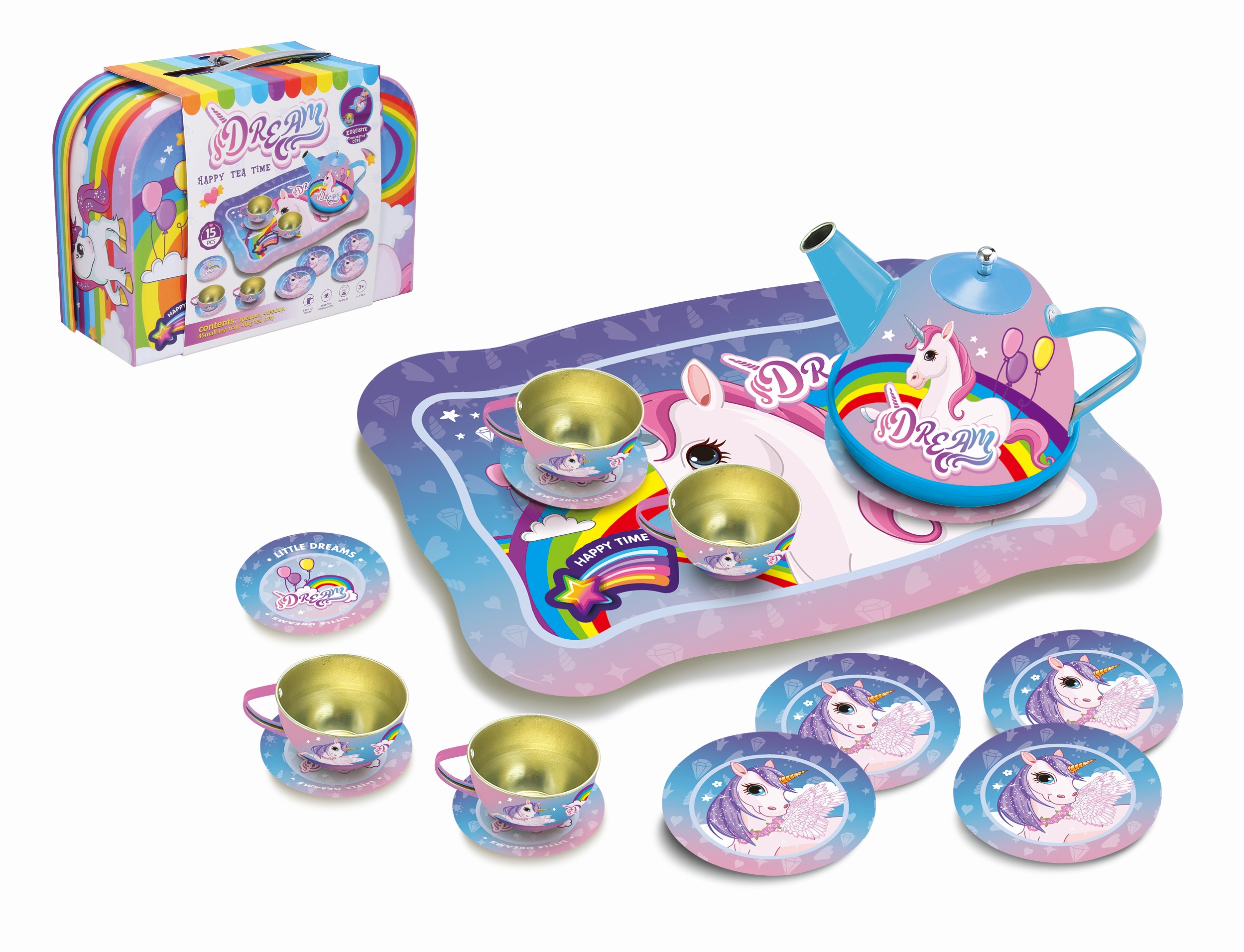 Čajový set v kufříku, jednorožec. Rozměry kufříku s rukojetí 25 x 19 x 10 cm. Obsah balení - konvice, 4 x šálek, 4 x podšálek, 4 x talířek. Vyrobeno z kovu.