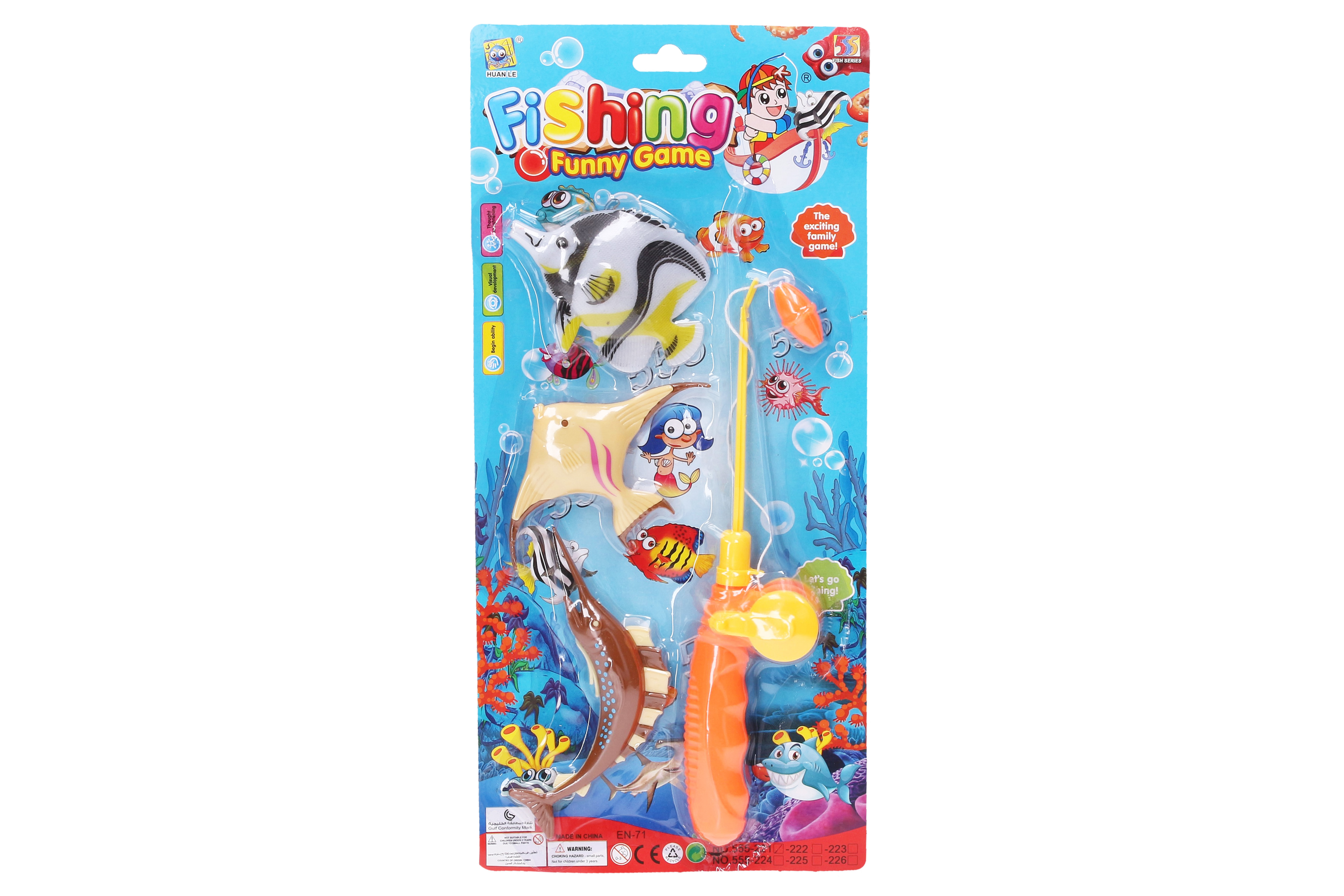 Chytání rybiček. Délka udice 24 cm. S magnetem. Balení obsahuje 3 rybičky 10 cm.