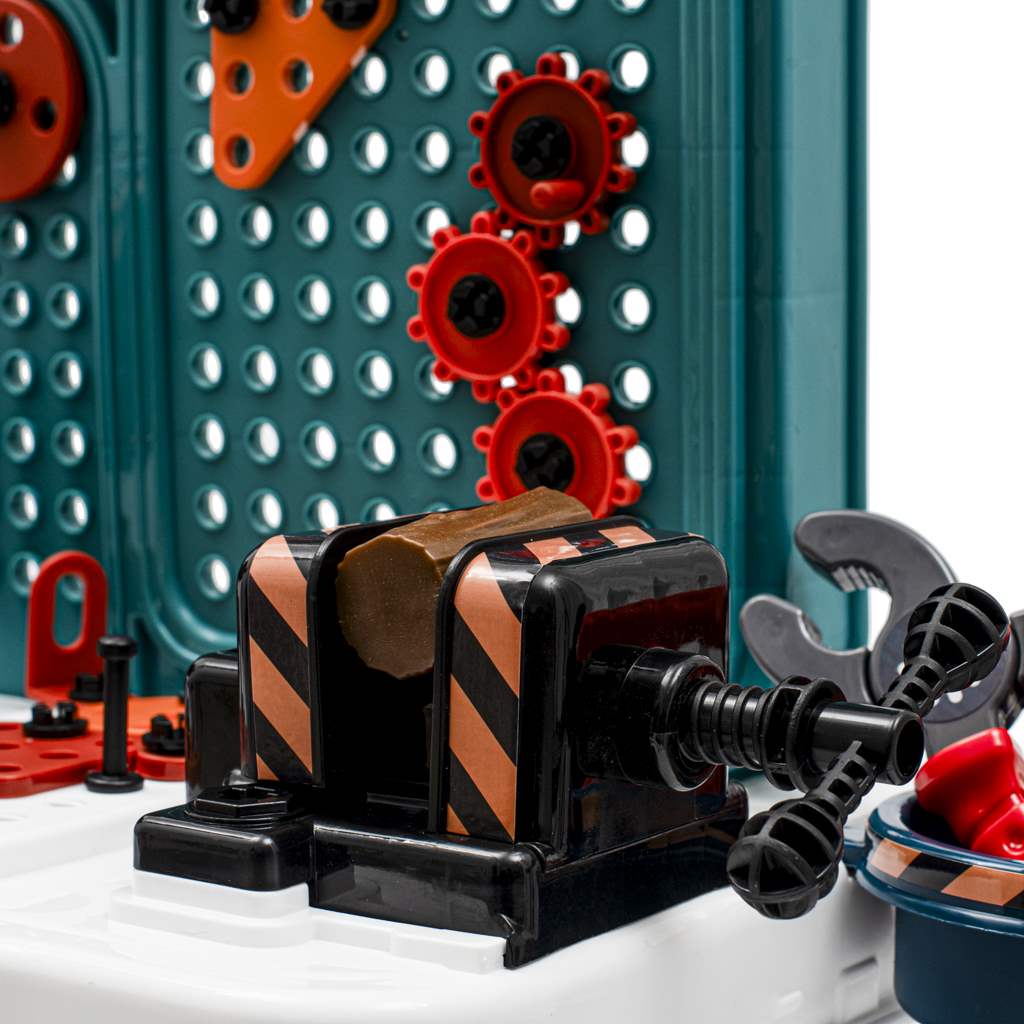 Dětská dílna obsahující 103 kusů nářadí je skvělým nástrojem pro malé nadšence do práce s dřevem, montáže nebo řemeslných činností. Dílna obsahuje šrouby, pilu, svěrák, kleště a další.