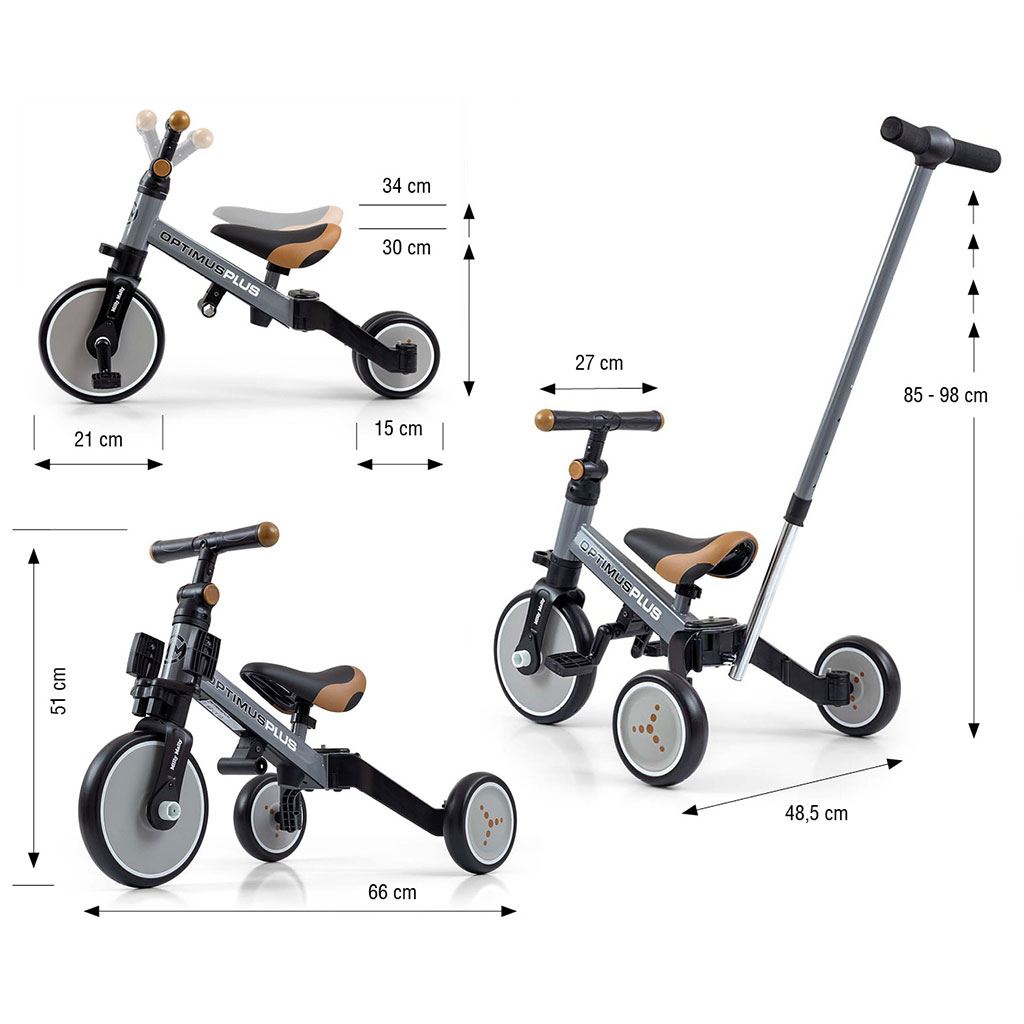 Dětská tříkolka Optimus Plus s vodící tyčí poskytuje bezpečnost a zábavu zároveň. Tříkolka má pěnová EVA kola, která zaručí plynulou, ničím nerušenou jízdu. Tříkolka Optimus Plus je navíc vybavena vodící tyčí pro rodiče, která má 4 stupně nastavení a lze ji odejmout, když dítě vyroste.