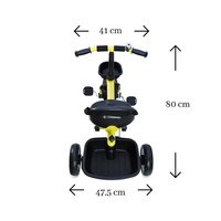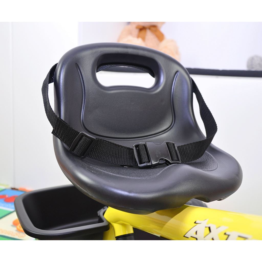 Dětská šlapací tříkolka s rukojetí Axel je určena pro děti ve věku od 1 do 3 let. Je vyrobena z kvalitních a odolných materiálů. Má pohodlné a ergonomicky tvarované sedlo, jehož vzdálenost k řídítkům lze snadno nastavit a tím přizpůsobit tříkolku věku a výšce dítěte. Tříkolka patří k produktům skupiny GROW UP, tedy roste s dítětem. Na předním kole lze uvolnit náhon na pedály a pomocí vodící tyče tlačit malého závodníka, když mu dojdou síly. Široká kola vyrobená z tvrzené pěny EVA, zaručí pohodlí a odolnost na každém povrchu. Do dvou praktických košíků si váš malý závodník naskládá všechny potřebné hračky a může vyrazit vstříc dobrodružství. Kombinace kovové konstrukce a součástek vyrobených z nejkvalitnějších materiálů zaručuje odolnost za všech podmínek. Pro maximální bezpečí dítěte má tříkolka tříbodové bezpečnostní pásy.