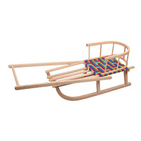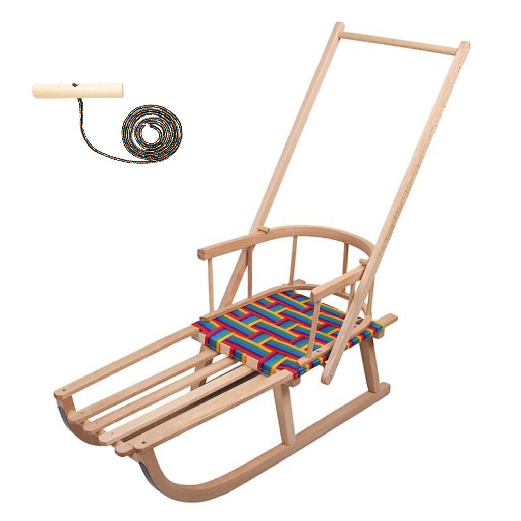 Dětské dřevěné sáňky s rukojetí pro děti. Krásné sáňky české značky New Baby s dřevěnou rukojetí a opěradlem, určené pro rekreační sáňkování.Vyrobeny z kvalitního bukového dřeva, ideální pro každou zimní zábavu. Sáňky poskytují dostatečný prostor pro 1 osobu. Sedadlo je vyplétané textilními nepromokavými popruhy - barevné provedení se liší dle aktuální nabídky. Spodní část je opatřena ocelovou skluznicí.