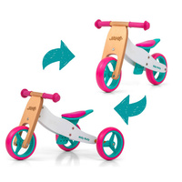 Dětské multifunkční dřevěné odrážedlo Milly Mally JAKE je ideální pro děti, které se právě začínají učí jezdit na kole a přitom nejsou schopné udržet rovnováhu na dvou kolech. Výhodou odrážedla JAKE je, že z tříkolky se snadno stane odrážedlo na dvou kolech. Je vyrobeno z pevného dřeva s krásnými veselými barvami, obrázky s pěnovými koly. Široké rozestupy kol poskytují extrémní stabilitu, bezpečnost a pohodlí doma i venku. Měkká neklouzavá rukojeť zajistí ochranu ruky dítěte. Krásné multifunkčí odrážedlo, které padne do oka jak holčičkám tak chlapečkům.