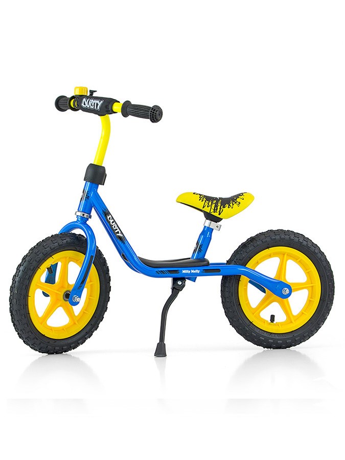 Dětské odrážedlo-kolo Milly Mally Dusty je ideální, když se dítě učí udržet rovnováhu. Je tou nejlepší alternativou pro kolo s bočními kolečky, takže pozdější jízda na klasickém kole bude mnohem jednodušší. Kolo je bez pedálů, díky čemuž se dítě dokáže soustředit hlavně na držení rovnováhy a směr jízdy. Má stojánek a nožičky lze položit na stůpátko.