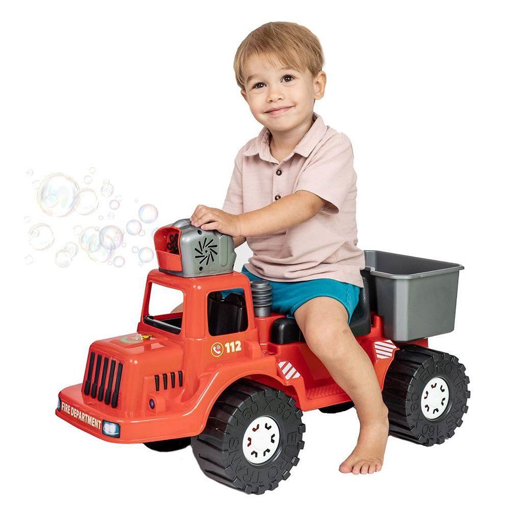 Policejní odrážedlo s bublifukem Bayo dokáže vytvořit nekonečné množství bublin. Na kabině vozu je bublifuk, ze kterého po nalití mýdlového roztoku a roztočení klikou vylétají bubliny.