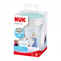 Hrneček NUK Magic Cup Frozen Elsa 230 ml umožňuje malým dětem pít jako velké děti. 360° pitný okraj podporuje a pomáhá pít ze všech stran – žádná držátka a pití téměř jako z normálního hrnečku. Jediný „kouzelný rozdíl“ je ten, že tekutina z hrnečku nevyteče díky silikonovému disku, který utěsňuje víčko zevnitř. Pití je dětská hra – stačí jednoduše sát okraj hrnečku.