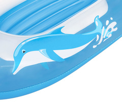 Dětský ponton je k dispozici ve 2 různých barvách, má nafukovací dno pro větší pohodlí, tažné lano se zabudovanými průchodkami a průhledné okno.