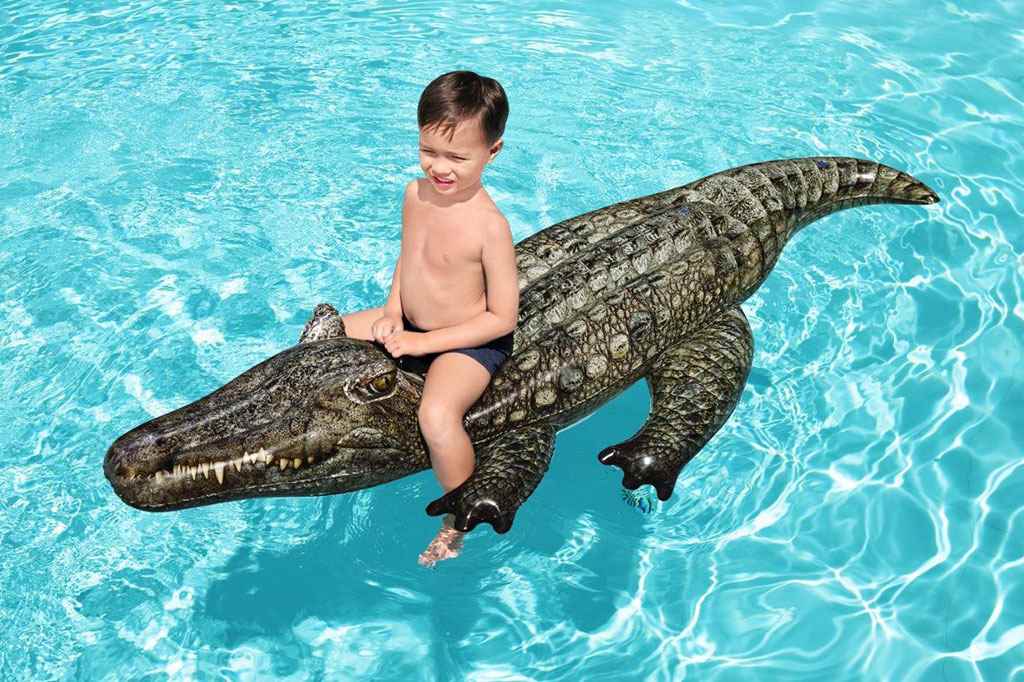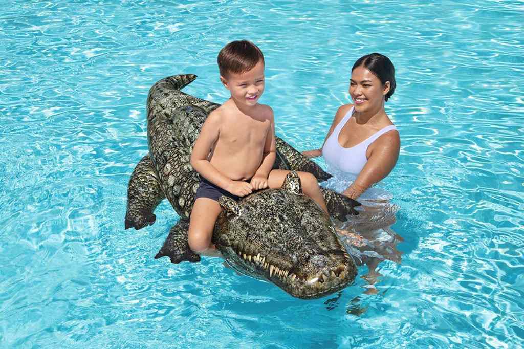 Dětský nafukovací krokodýl do vody Bestway. Krokodýl má pevné držadlo pro pohodlné uchycení. Vaše děti si určite užijí spoustu zábavy a příjemného osvěžení v horkých letních dnech. Krokodýla lze používat v bazénech i u moře. Vhodné pro děti od 3 let. Složení: PVC. Rozměr: cca 193x94 cm.