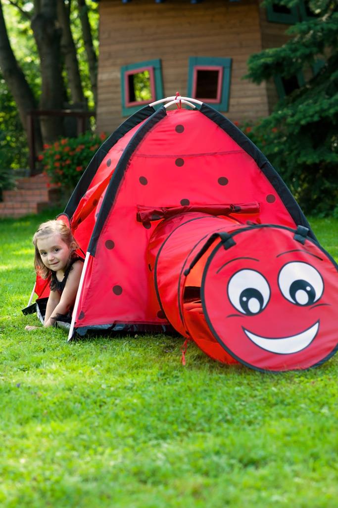 Skvělý dětský stan Baby Mix Beruška s tunelem pro vaše aktívní berušky. Snad každé dítě si rádo staví improvizované stany s pomocí židlí, stolu a dek, u nás máte vystaráno. Díky našemu stanu bude mít vaše princezna konečně svoji vysněnou komnatu, své vlastní království, úkryt, ve kterém si bude moct užít soukromí nebo naopak pozvat své nejlepší kámošky. Ať už ve svém pokojíčku, v létě na zahradě, nebo na pláži zažijí s ním děti spoustu zábavy vytvářením svých vlastních imaginárních světů. Tunel se do stanu jen zasune, není na pevno připevněn, lze s ním libovolně manipulovat. Pro celý komplet, stan i tunel je typické rychlé a jednoduché rozložení i složení. Je vyroben z kvalitní a pevné látky. Určeno pro děti od 3let.