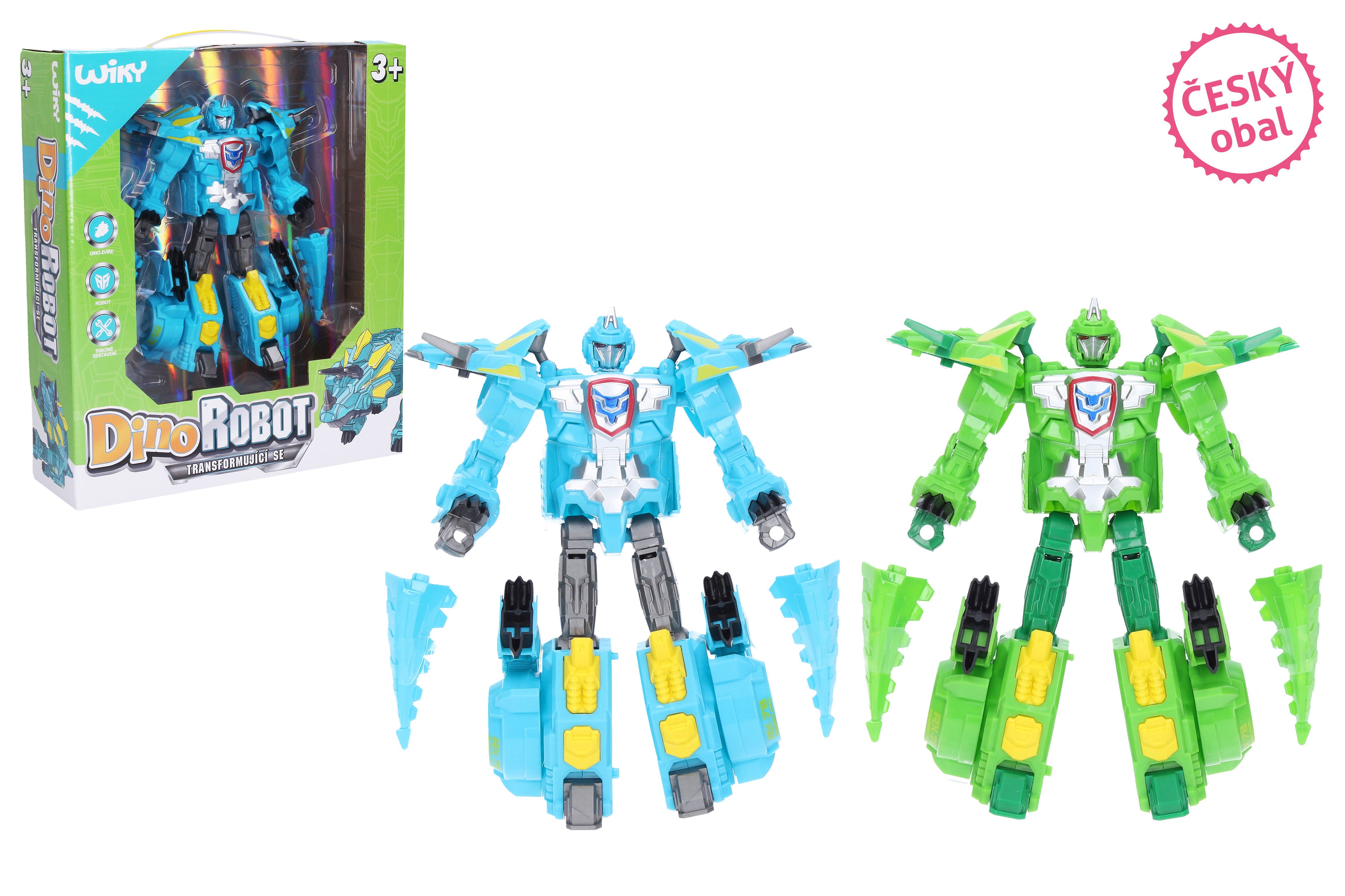 Dino robot. - český obal. Rozměry 17x3x19 cm. 2 varianty - modrá, zelená.