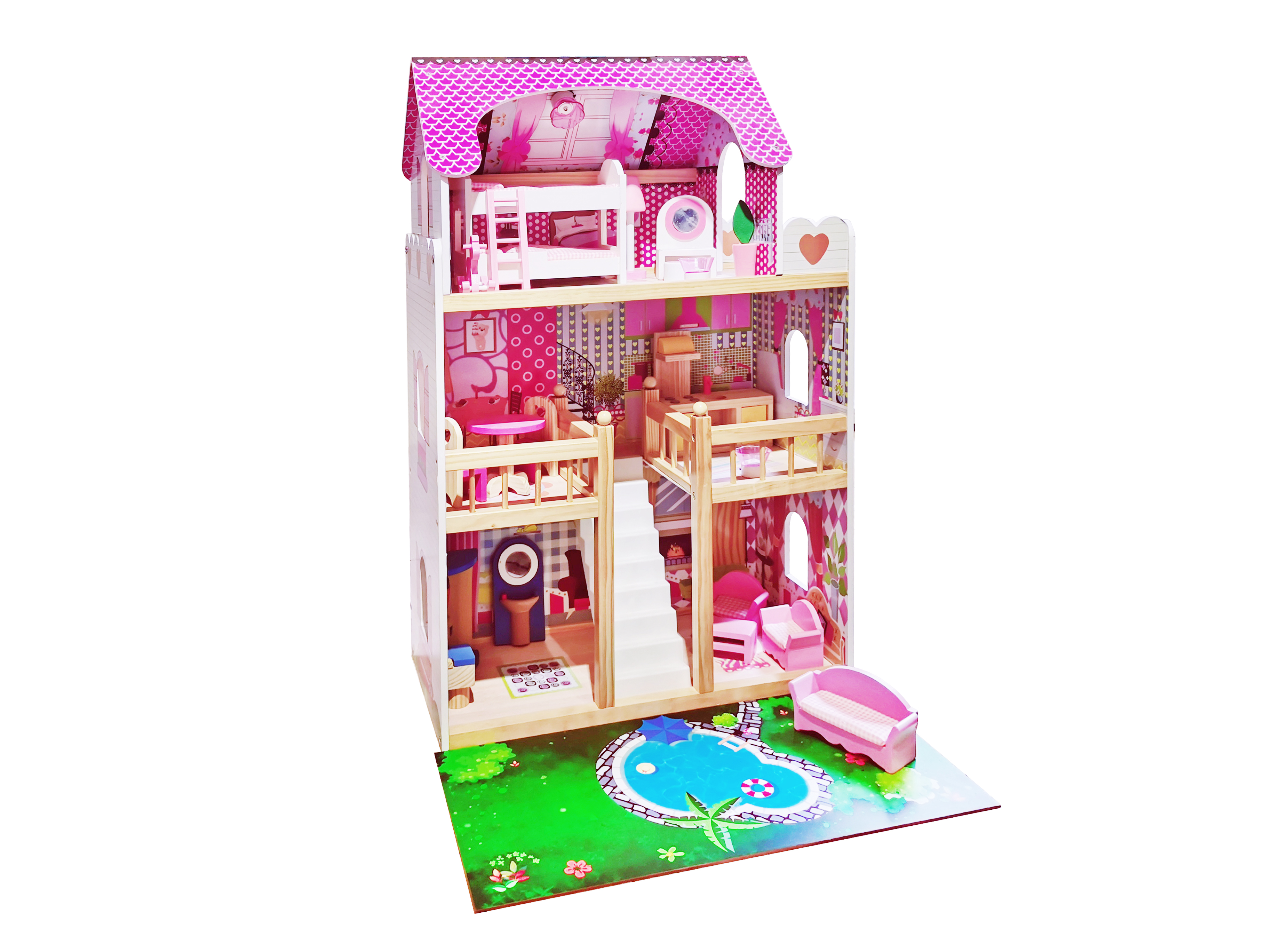 Domek pro panenky. Vyroben ze dřeva. Velikost ve složeném stavu 60 x 30 x 90 cm.