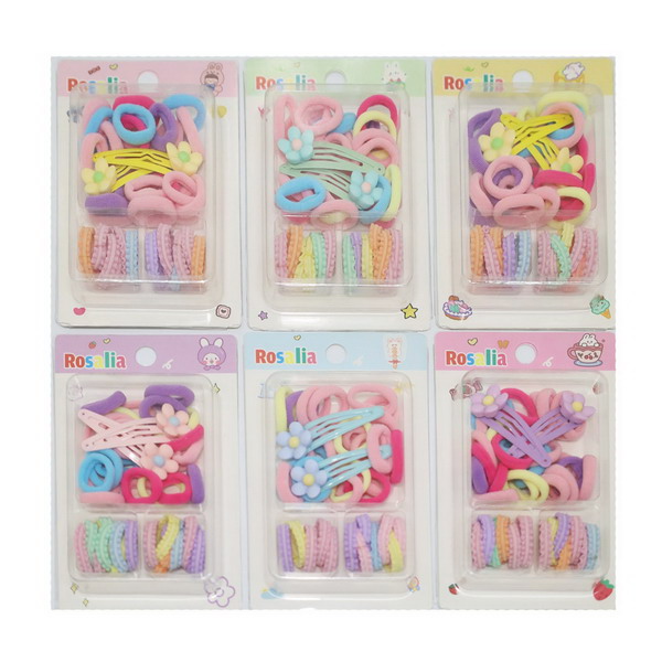 Doplňky do vlasů SET. Obsahuje gumičky, sponky. Více variant.