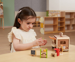Dřevěná mobilní kavárnička je mimořádně kreativní a pečlivě zpracovaná hračka, která děti přivádí do fascinujícího světa kavárenských dobrodružství. Díky realistickým prvkům mohou děti vystoupit v roli baristy a obsluhovat své „zákazníky“, což činí hru velmi poutavou. Kavárnička nejen baví, ale také podporuje rozvoj dítěte v mnoha směrech: rozvíjí fantazii, motoriku i sociální dovednosti. Hra na přípravu kávy a podávání pokrmů rozvíjí empatii i komunikační schopnosti a učí děti interakci v různých situacích.