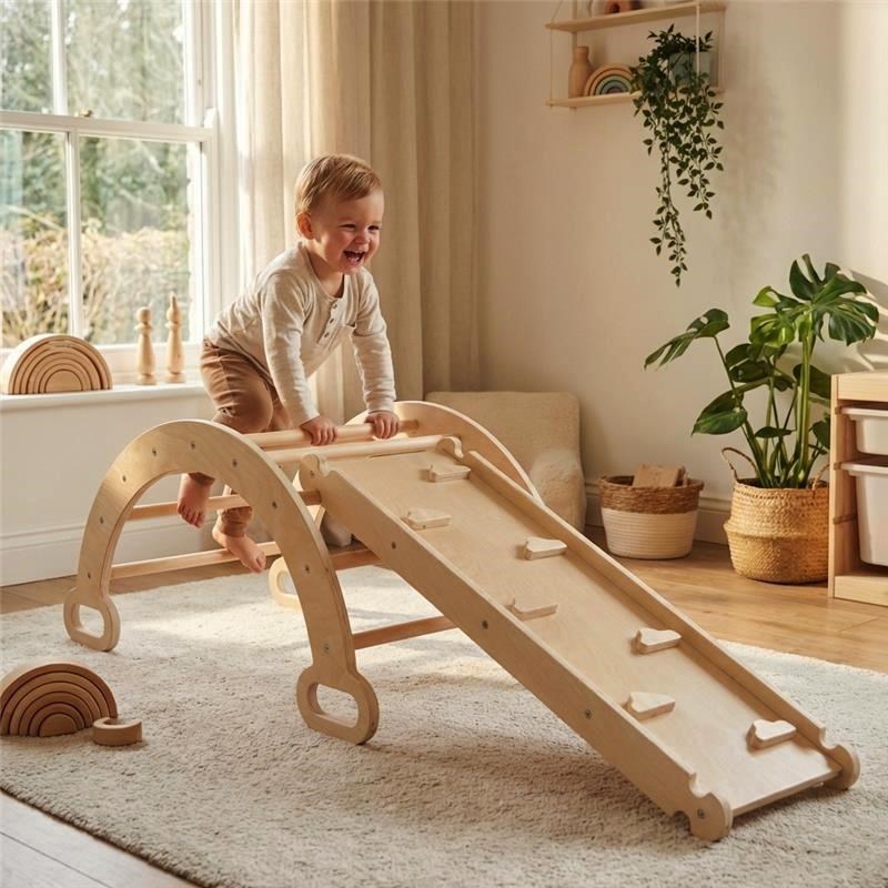 Dřevěná Montessori (Pikler) lezecká sestava Baby Mix pomáhá dětem přirozeně rozvíjet pohyb, rovnováhu i sebevědomí. Díky variabilní konstrukci se skládá z několika prvků, které lze kombinovat a přizpůsobit věku i dovednostem dítěte.