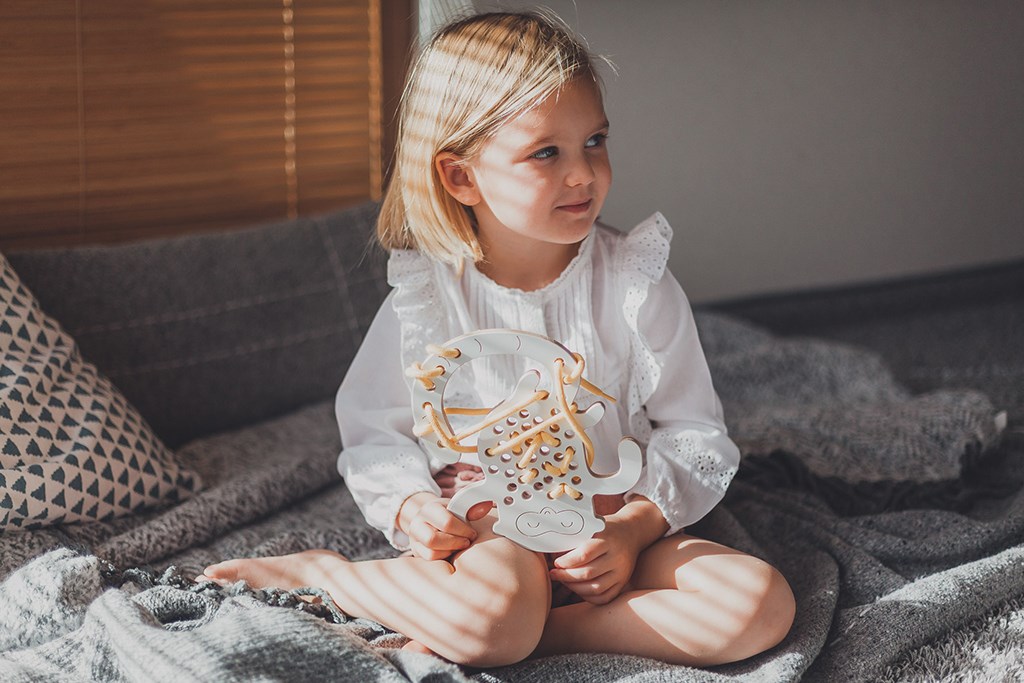 Dřevěná Montessori provlékačka Opička Emily