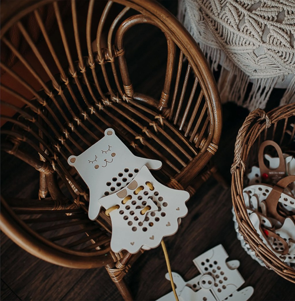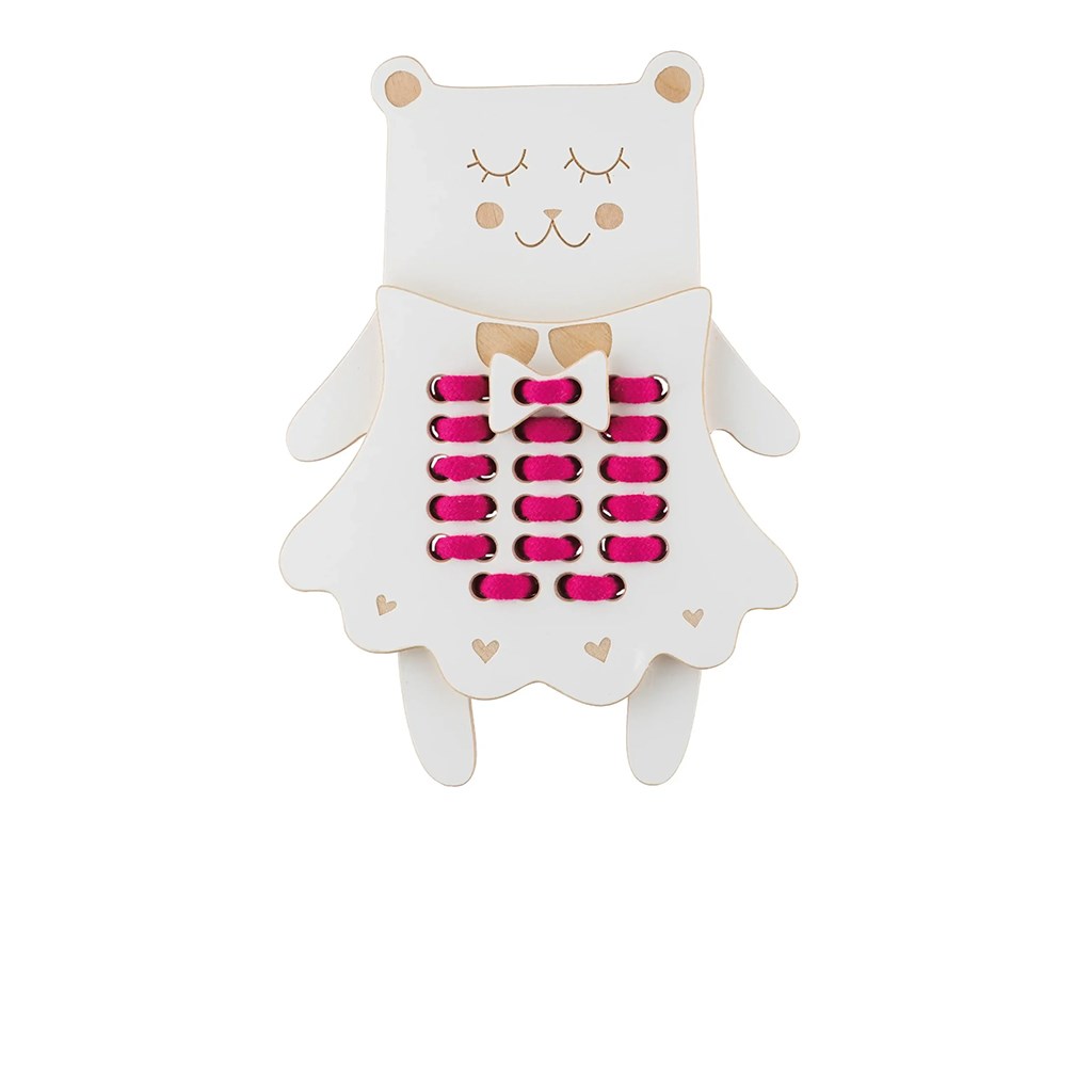 Dřevěná Montessori provlékačka Slečna medvědice-pokročilá úroveň