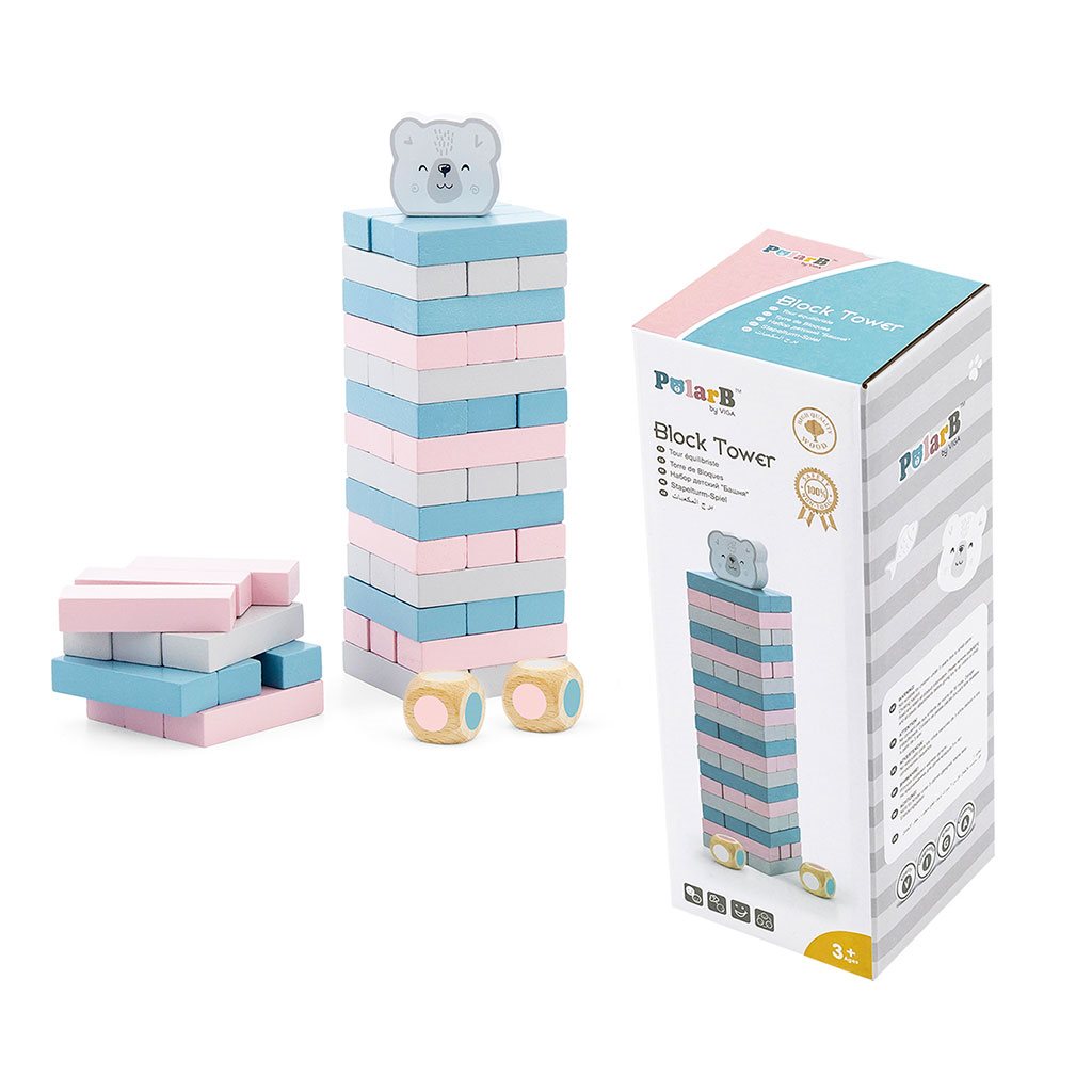 Oblíbená hra se skládání věže - v nových tlumených barvách od společnosti VIGA - ze série Polar Bear. Hra, do které se jistě zapojí celá rodina. Hra začíná postavením výchozí věže z dřevěných kostek uprostřed stolu nebo podlahy. Když máme startovní věž - každý hráč si postupně vezme jeden vybraný nebo nakreslený blok někde ze středu věže a položí ho na vrchol věže, čímž staví věž směrem vzhůru. Cílem hry je postavit co nejvyšší věž. Hra rozvíjí koordinaci rukou, procvičuje soustředění a je zdrojem nekonečné zábavy pro celou rodinu!