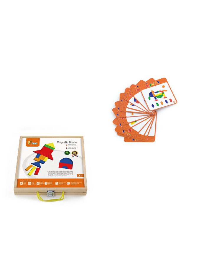 Dřevěný kufřík s magnetickými kostkami Viga. Dřevěný kufr obsahuje 42 kostek a 12 karet s 24 kombinacemi, do kterých je možné umístit kostky. Dítě může tvořit na základě šablony, nebo vytvořit vlastní kombinace. Všechny jsou vyrobeny z vysoce kvalitních materiálů. Magnetické a barevné kostky jsou v různých tvarech, což umožní dítěti vytvořit nové postavy. Při hraní s magnety se dítě naučí pravidla jejich činnosti a vstoupí do světa nového dobrodružství. Vzbuzuje zvědavost a tvořivost. Tato fantastická hračka funguje jako didaktická pomůcka. Hračka pomáhá zlepšit manuální zručnost a obratnost, učí dítě rozpoznat tvary a barvy, zapojuje a rozvíjí smysl pro pozorování. Hračka je vyrobena z lakovaného dřeva. Naší prioritou je bezpečnost a kvalita našich výrobků, a proto barvy použité na hračkách nejsou toxické a splňují bezpečnostní standardy (EN71 a ASTM). Pro děti od 36 měsíců. Hračka je vhodná jako krásný dárek, kterou si vaše děti zamilují.