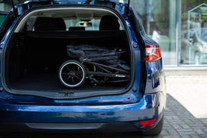 Po složení má kompaktní rozměry, prakticky stejné jako sklopený jednovozíkový kočárek.