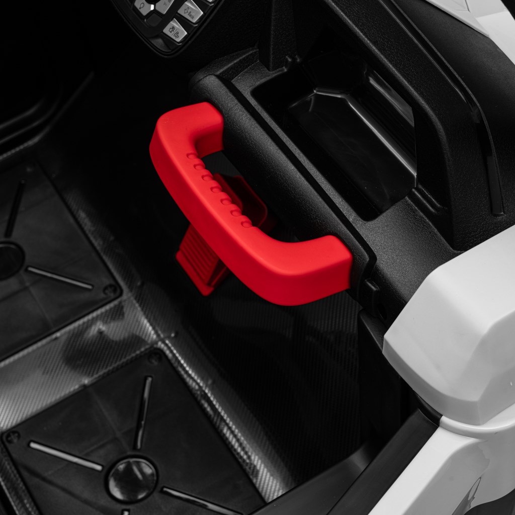 Elektrická autíčko má otevírání dveří z obou stran, startování pomocí tlačítka a hudební panel se vstupem USB, takže si dítě při jízdě bude moct poslechnout svou oblíbenou hudbu. Nechybí také ovládání hlasitosti hudby či předem nahrané melodie v autíčku pro ještě větší zábavu.