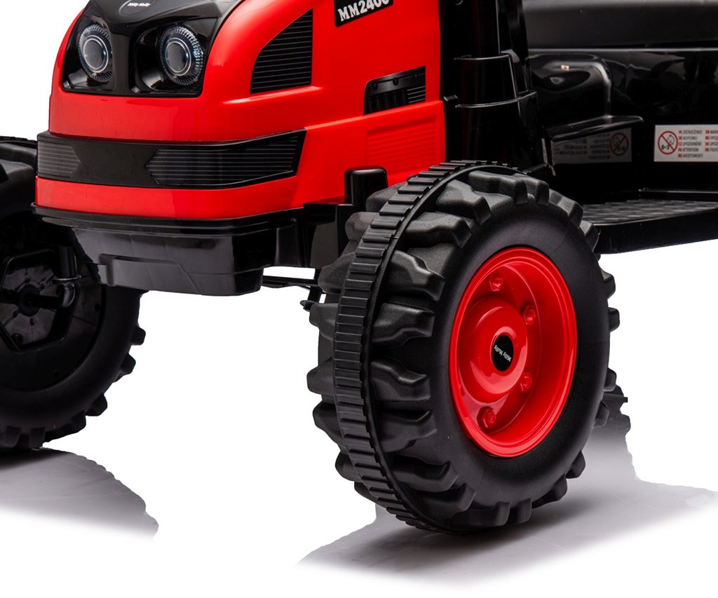 Jedná se o ideální vozidlo pro děti ve věku od 3 do 5 let. Traktor je dodáván s přívěsem pro další zábavu. Kovové bezpečnostní tyče vpředu a vzadu a imitace komína / výfuku, vrčivý zvuk motoru traktoru, to vše umožňuje malým řidičům popustit uzdu své fantazii a cítit se jako skuteční traktoristé. Vypínač aktivuje realistický vrčivý zvuk motoru traktoru, zatímco tlačítko současně vypíná vozidlo. Dva motory umístěné v traktoru dosahují průměrné rychlosti 3-5 km/h.