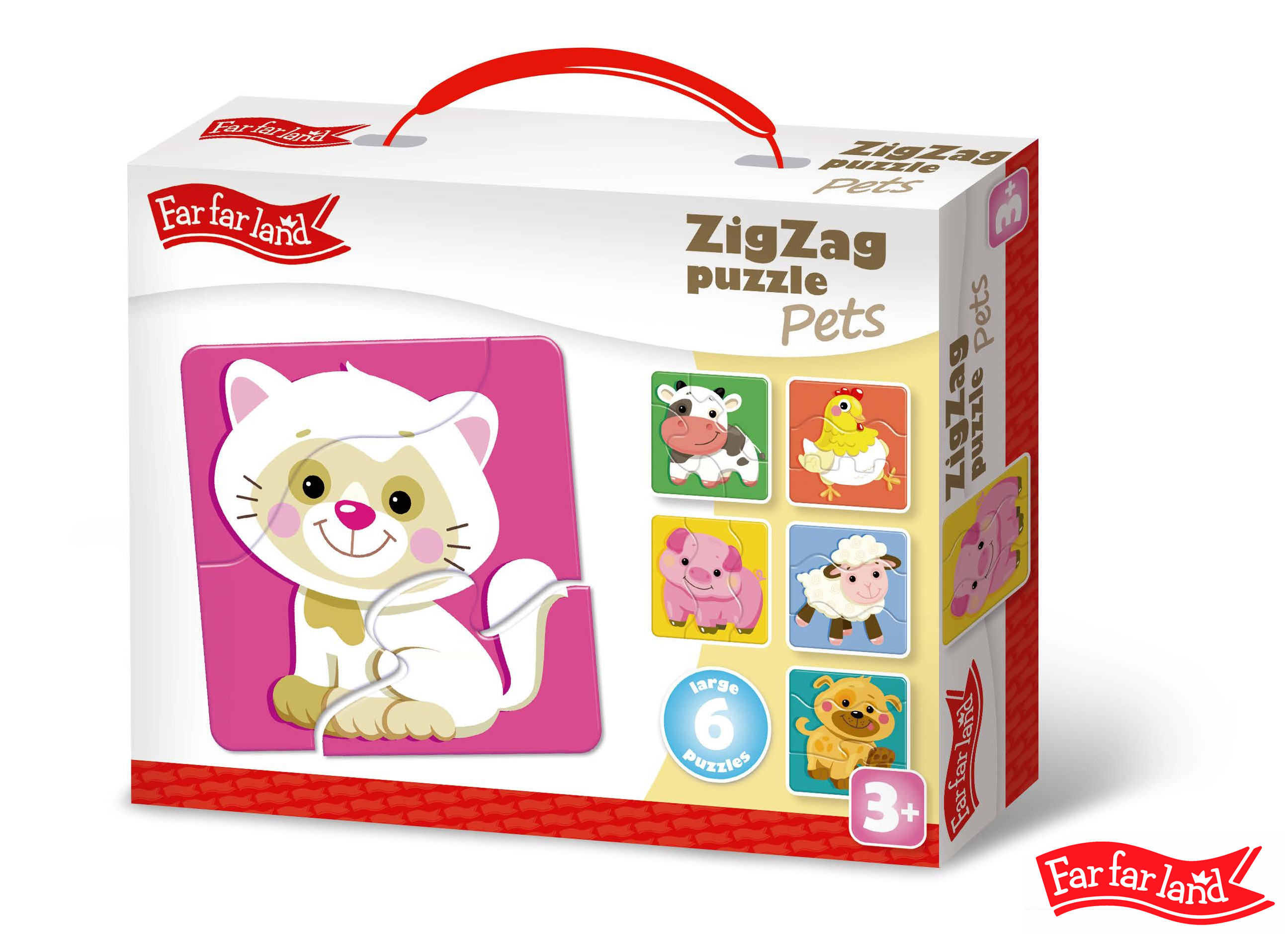 Far Far Land Puzzle ZigZag vlnky, motiv domácí zvířátka. Balení obsahuje 6 puzzle obrázků.