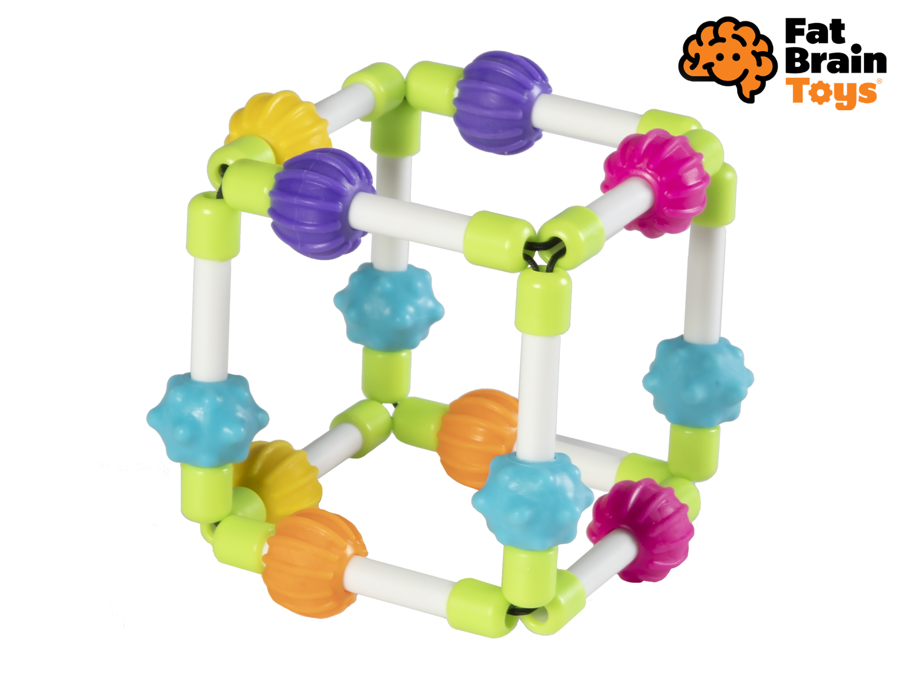 Fat Brain měkká hračka pro děti Quubi. Hračka z měkkého pružného materiálu. Obsahuje různé pohybující se části, různých tvarů a textur. Vhodná i pro kousání.