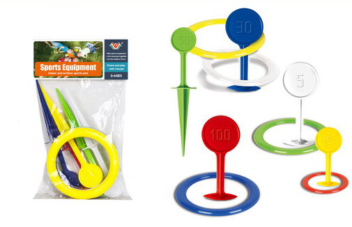 Házení kroužků hra. Obsah balení - 5x kolík 24 cm, 5x kroužek 14,3 cm.