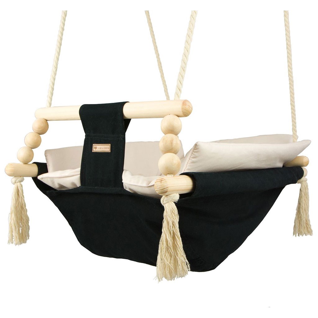 Díky použití bavlny příjemné na dotek se zde dítě cítí útulně, pohodlně a bezpečně. Silná bavlněná lana jsou vybavena kovovými kolečky, která umožní instalaci houpačky také na terasu, verandu nebo na zahradu.