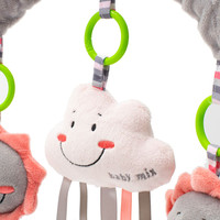 Krásná barevná hračka-hrazdička Baby Mix do kočárku. Na hrazdičce je pět plyšových hraček. Madlo hračky má dva klipy, kterými lze hračku připevnit ke kočárku, lehátku nebo autosedačce. Tvary a barvy hračky lákají pozornost dítěte, učí ho, baví a rozvíjí tak dětskou fantazii. Hračka je vyrobená z kvalitního a příjemného materiálu. Výška hraček cca 12 cm. Délka madla cca 80 cm. Vhodné pro děti od 3 měsíců.