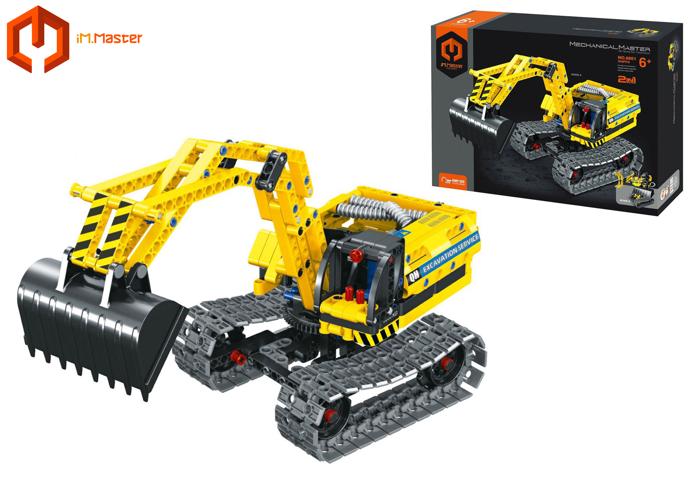 iM.Master Stavebnice bagr robot 2v1. Rozměry 31x14x16 cm. 342 dílků. Možnost postavit bagr nebo robota. Otáčecí základna a pohyblivé nabírací rameno.