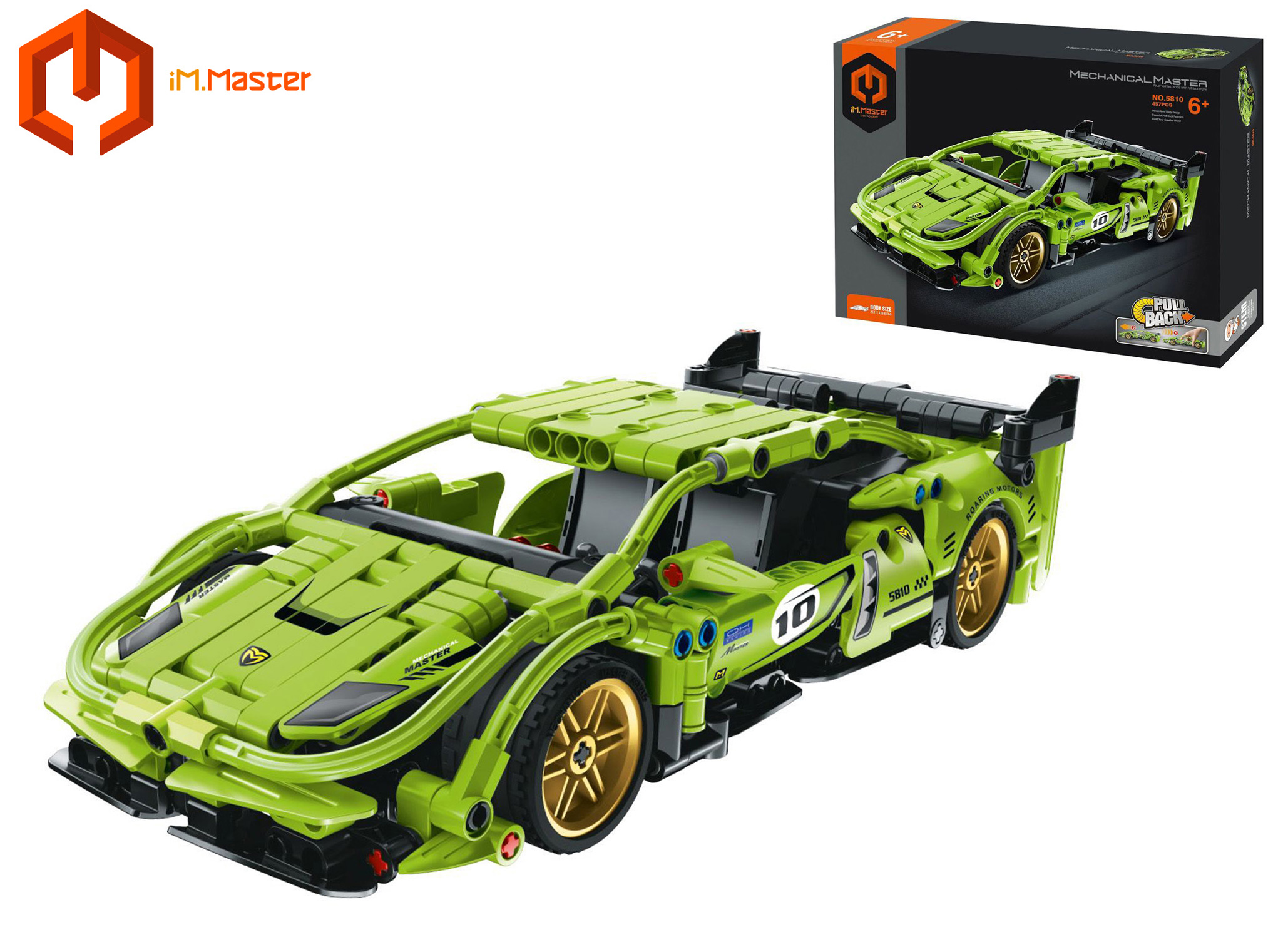 iM.Master Stavebnice závodní auto zelené. Rozměry 25x11,4x6,6 cm. 457 dílků. Na zpětné natažení. Otevírací dveře.