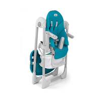 Čalounění židle je vyrobeno z ekologické kůže a má navíc měkkou vložku pro nejmenší. Pro bezpečnost dítěte je vybavena 5-ti bodovými nastavitelnými pásy a přídavnou zábranou proti uklouznutí. Na zadní straně opěradla je úchyt pro zavěšení tácu. Opěradlo i podnožku lze sklopit do lehu. Sedák lze zvednout nebo snížit v 7 stupních a nohy mají zabudovaná gumová kolečka. Celou konstrukci lze snadno a hladce složit.