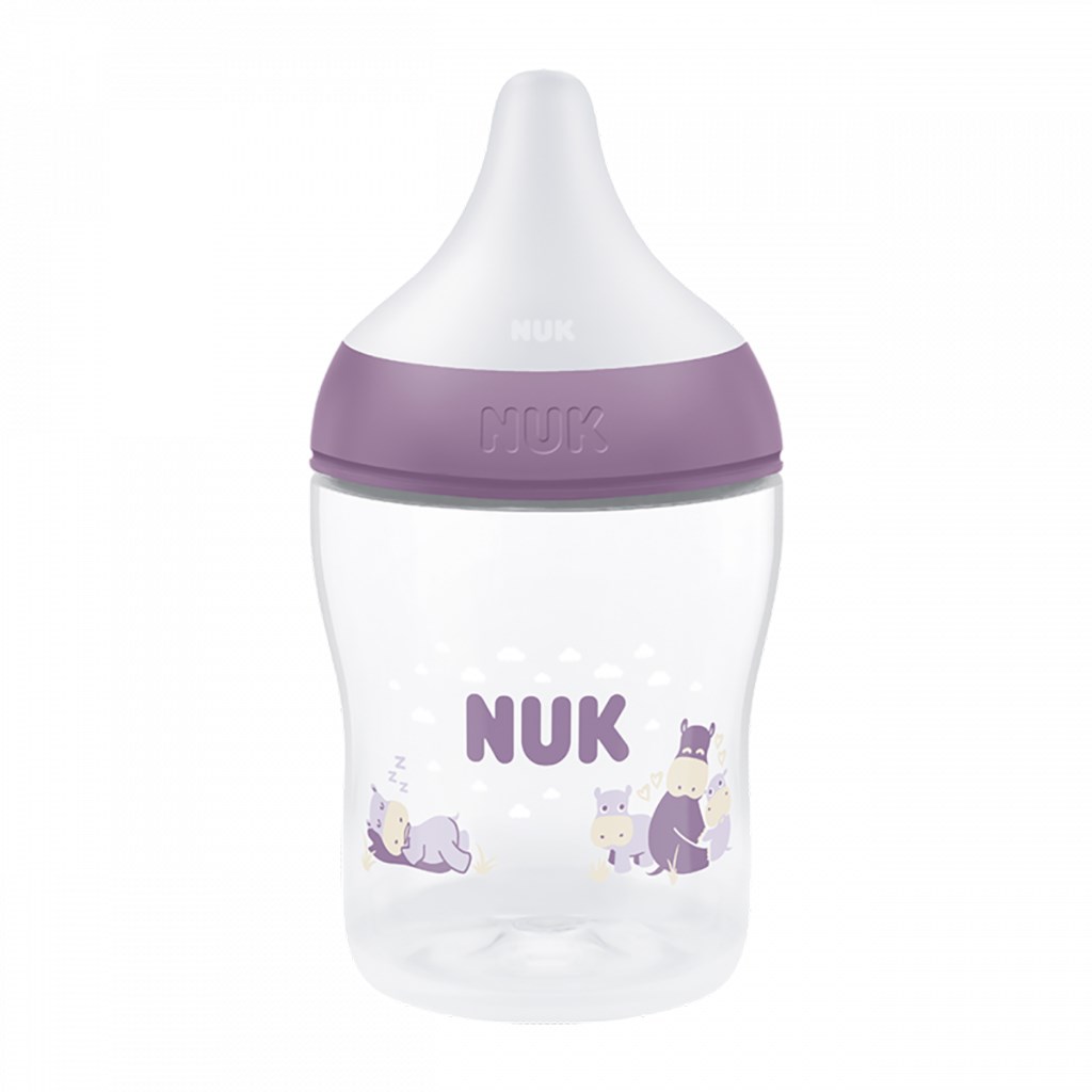 Kojenecká láhev NUK Perfect Match s kontrolou teploty a měkkou silikonovou savičkou. Speciální tvar typický pro savičky NUK s ortodontickou antikolikovou savičkou je modelován podle mateřské bradavky při kojení. Ponechává dostatek prostoru pro přirozené sací pohyby jazyka i čelisti. Velká, široká opora rtů při pití připomíná matčinu pokožku. Lahvička je navržena tak, aby miminko nepřišlo do kontaktu s pevnými plastovými částmi. Vylepšený systém proti polykání vzduchu při pití Anti Colic Air System zajišťuje přirozený tok mléka, aby dítě pilo uvolněně bez polykání vzduchu. Hladce se zužující tvar s antikolikovou funkcí pro plynulý a nerušený průtok pití, velikost S (od narození, pro mateřské mléko, čaj nebo vodu). Kojenecké láhve jsou nyní vybaveny novou NUK kontrolkou teploty a pomáhají tak zabránit tomu, aby vaše dítě pilo příliš horký příkrm. Kontrolka vypadá jako teploměr, je umístěna mezi ryskami a teplota obsahu láhve změní její barvu. Pokud je příkrm příliš horký, modrá kontrolka se změní na bílou. V ideálním případě by měl příkrm mít tělesnou teplotu (37 °C), což odpovídá modrému zabarvení displeje. Vyrobena z vysoce kvalitního nerozbitného plastu polypropylenu a neobsahuje BPA (Bisfenol A). Obsah láhve 150 ml. Vhodná pro děti od narození, S (malý otvor = pro mateřské mléko, vodu, čaj). Klinicky testováno.