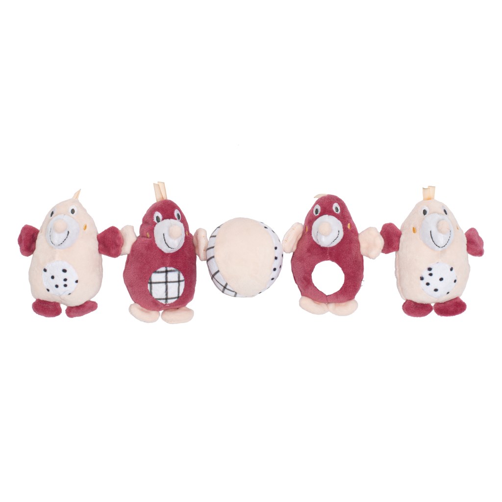 Kolotoč Baby Mix nad postýlku s plyšovými hračkami pomáhá rozvíjet koordinaci oko-ruka a uklidňuje dítě před usnutím. Po aktivaci hraje melodie a hračky se otáčejí. Vhodný pro děti, které se ještě nepohybují. Barva hraček se mění v závislosti na aktuální nabídce. Výška hraček 12 cm.