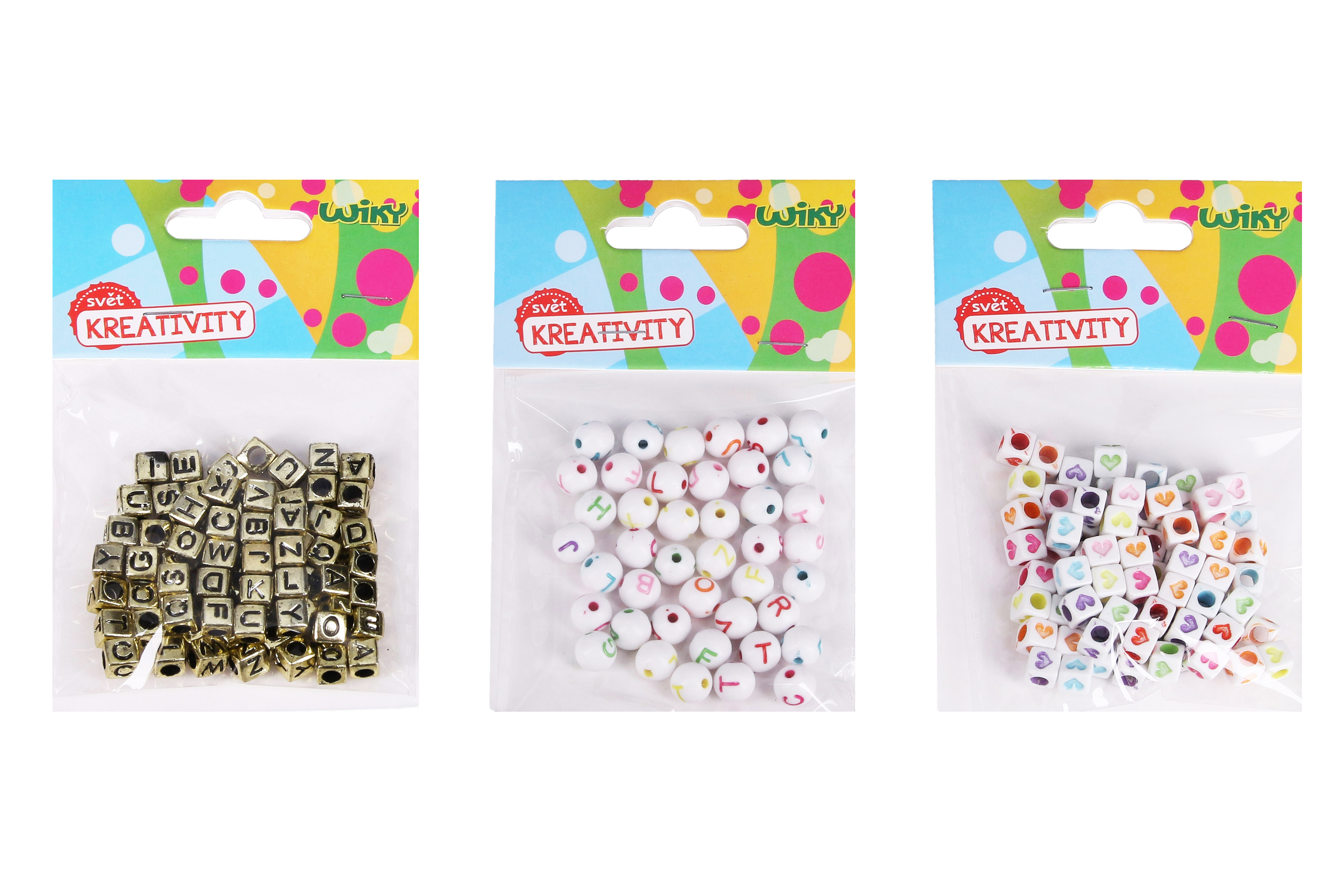 Korálky různých tvarů a barev pro drobnou kreativitu.