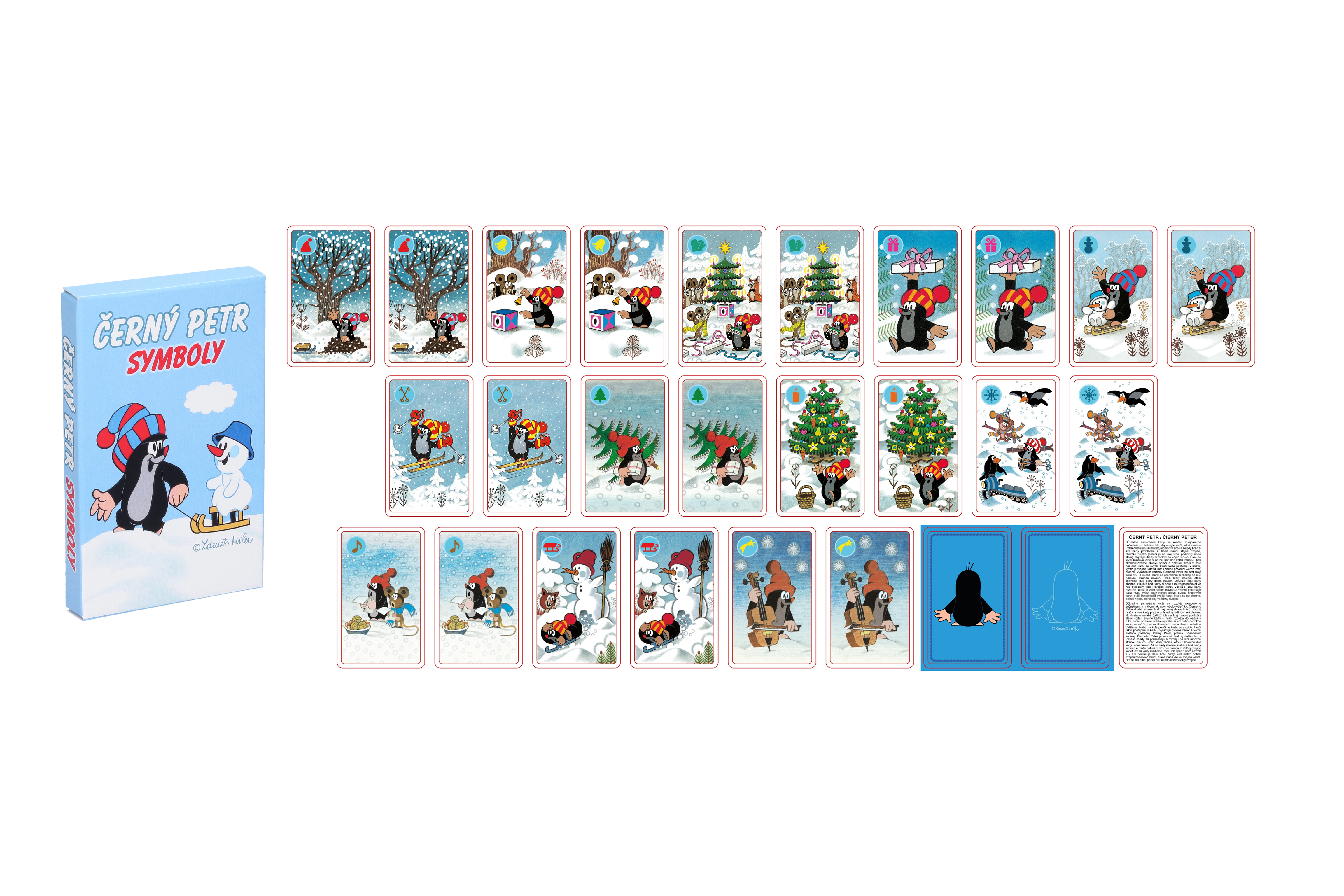 Černý Petr symboly. Klasická kartová hra. Obsahuje 31 karet a návod. 10,5x6,5x1,5cm