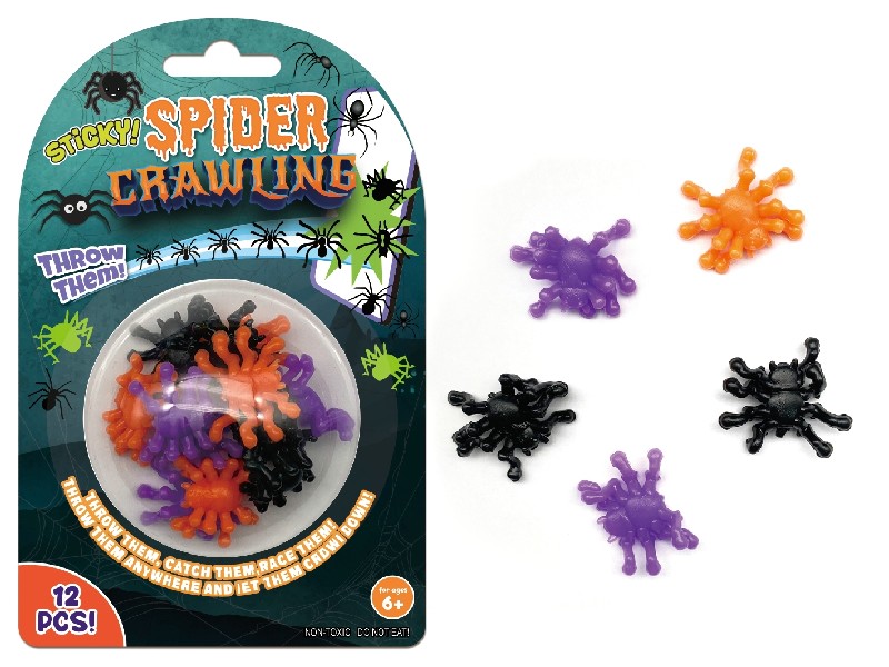 Lepiví pavouci. Balení obsahuje 12 ks. Velikost 3 cm.