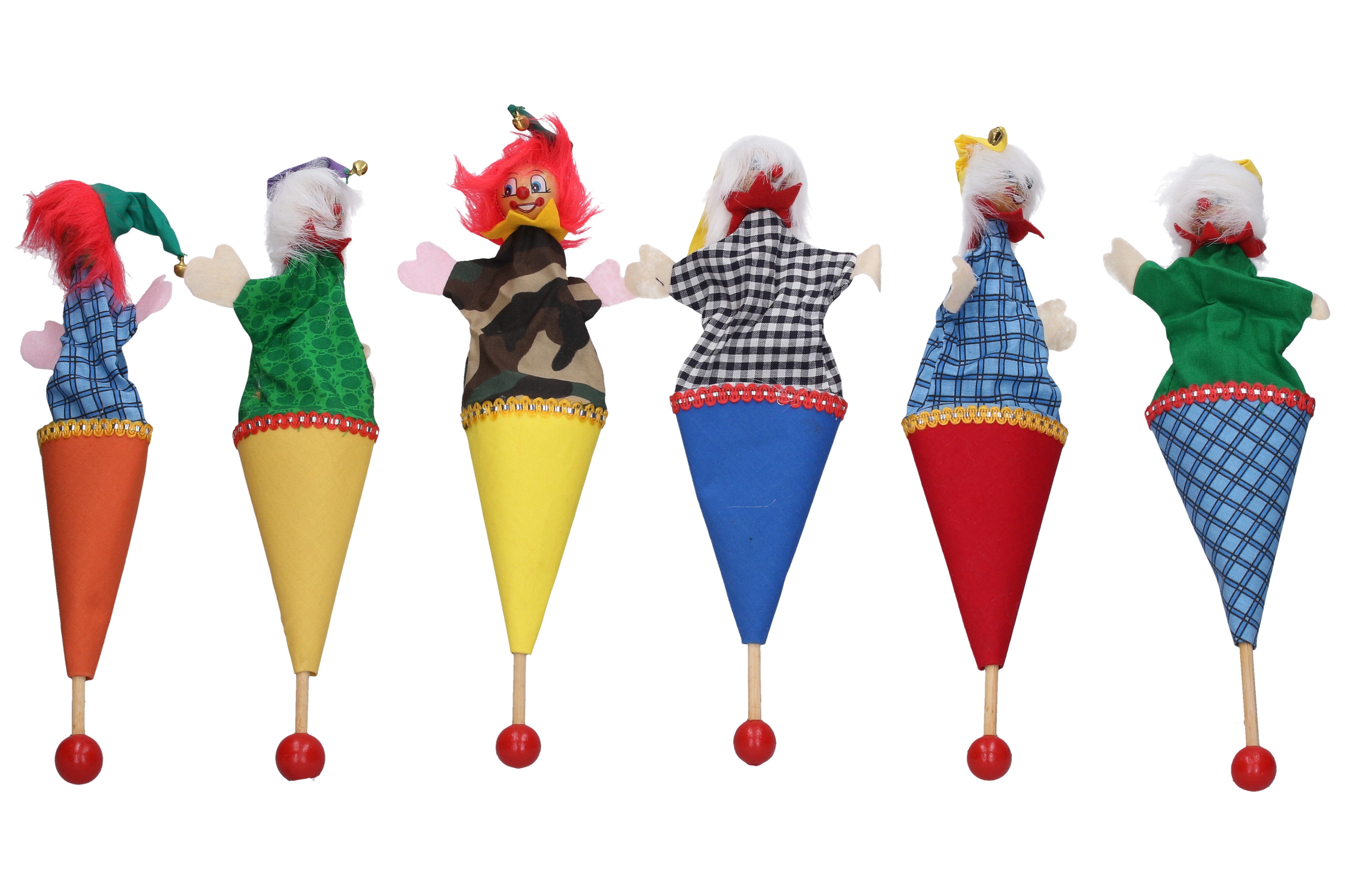Loutka klaun. Velikost 27 cm. Dřevo a textil. více variant