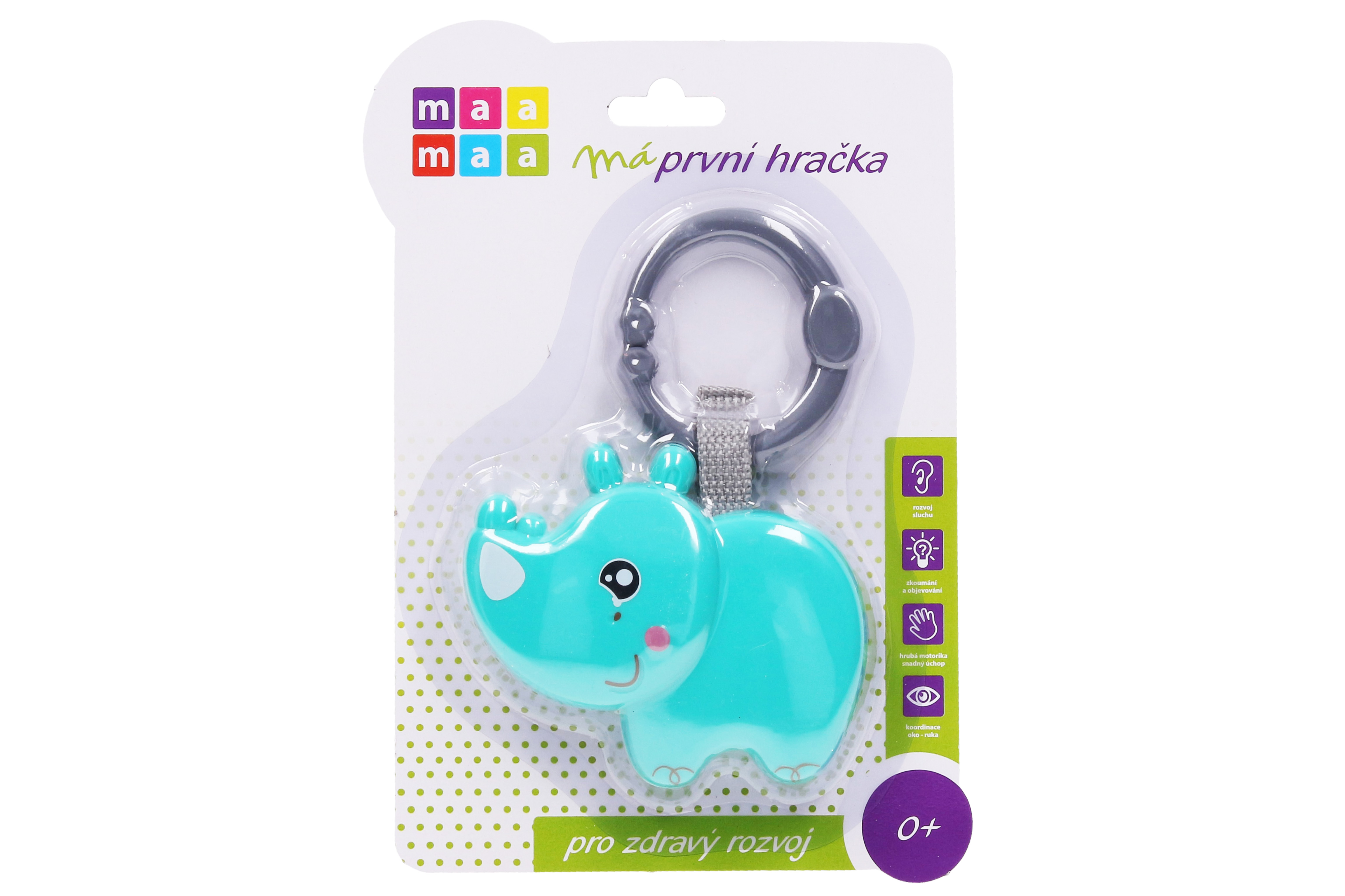 Maamaa Chrastítko nosorožec. Rozměry 14,5x3x21,5 cm.